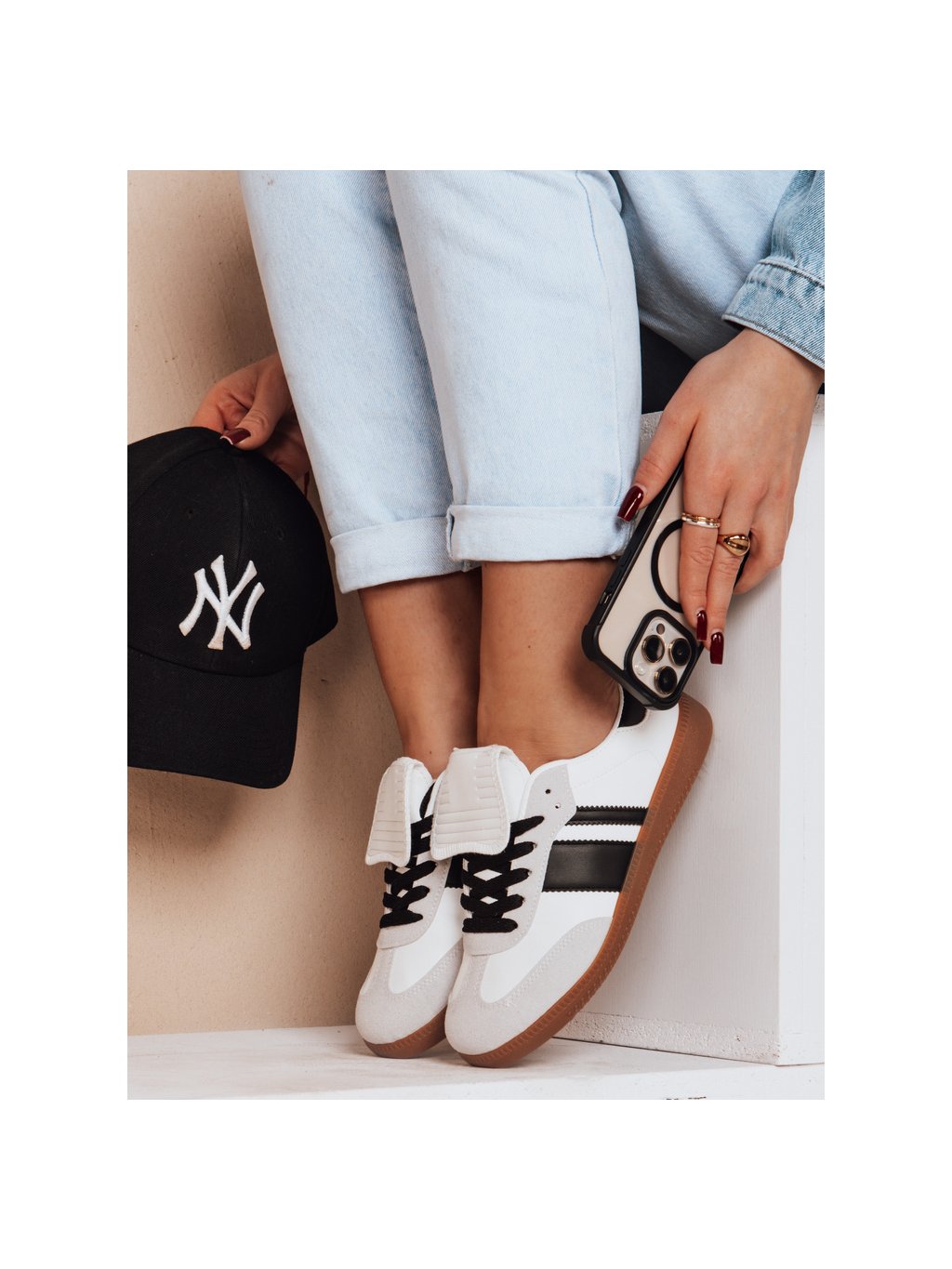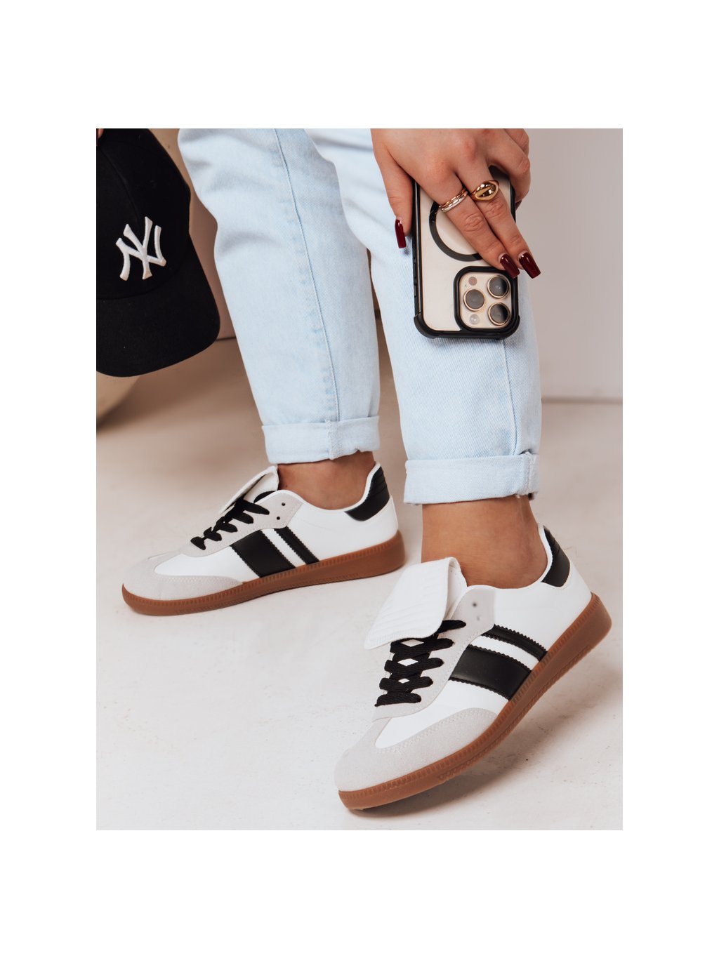 Dámské bílo-černé tenisky s plochou gumovou podrážkou SNIKARI