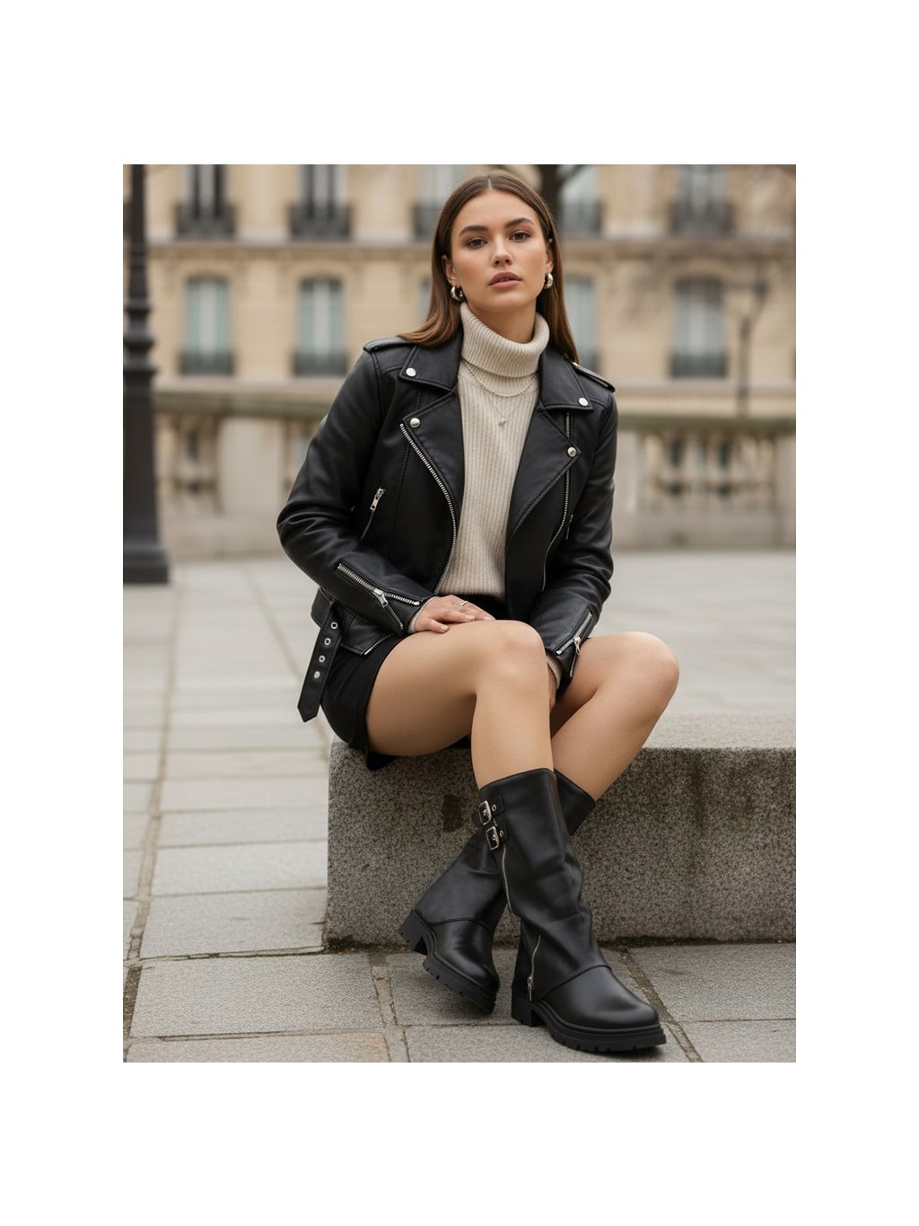 Dámské černé polokozačky s dvojitou přezkou