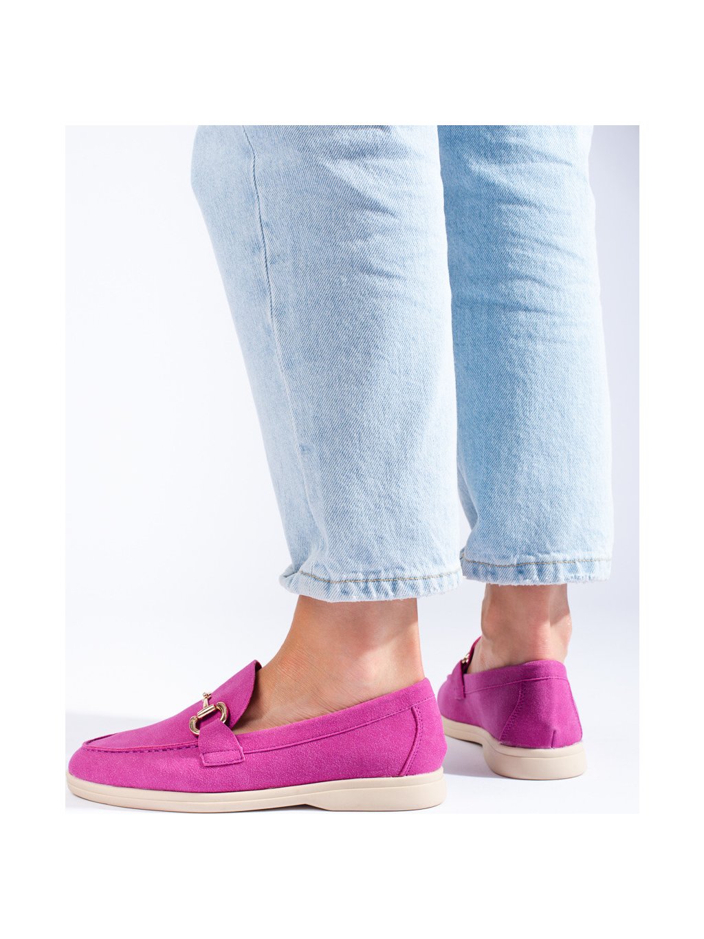 Dámské semišové růžové mokasíny se zdobením