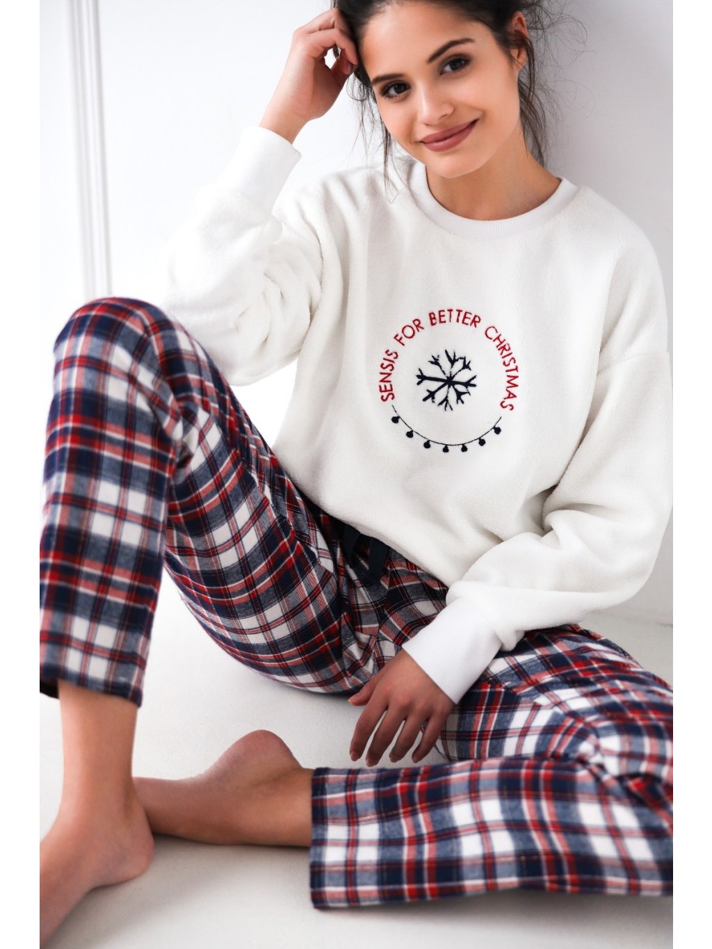 - dlouhé kárované kalhoty z materiálu flanelového typu