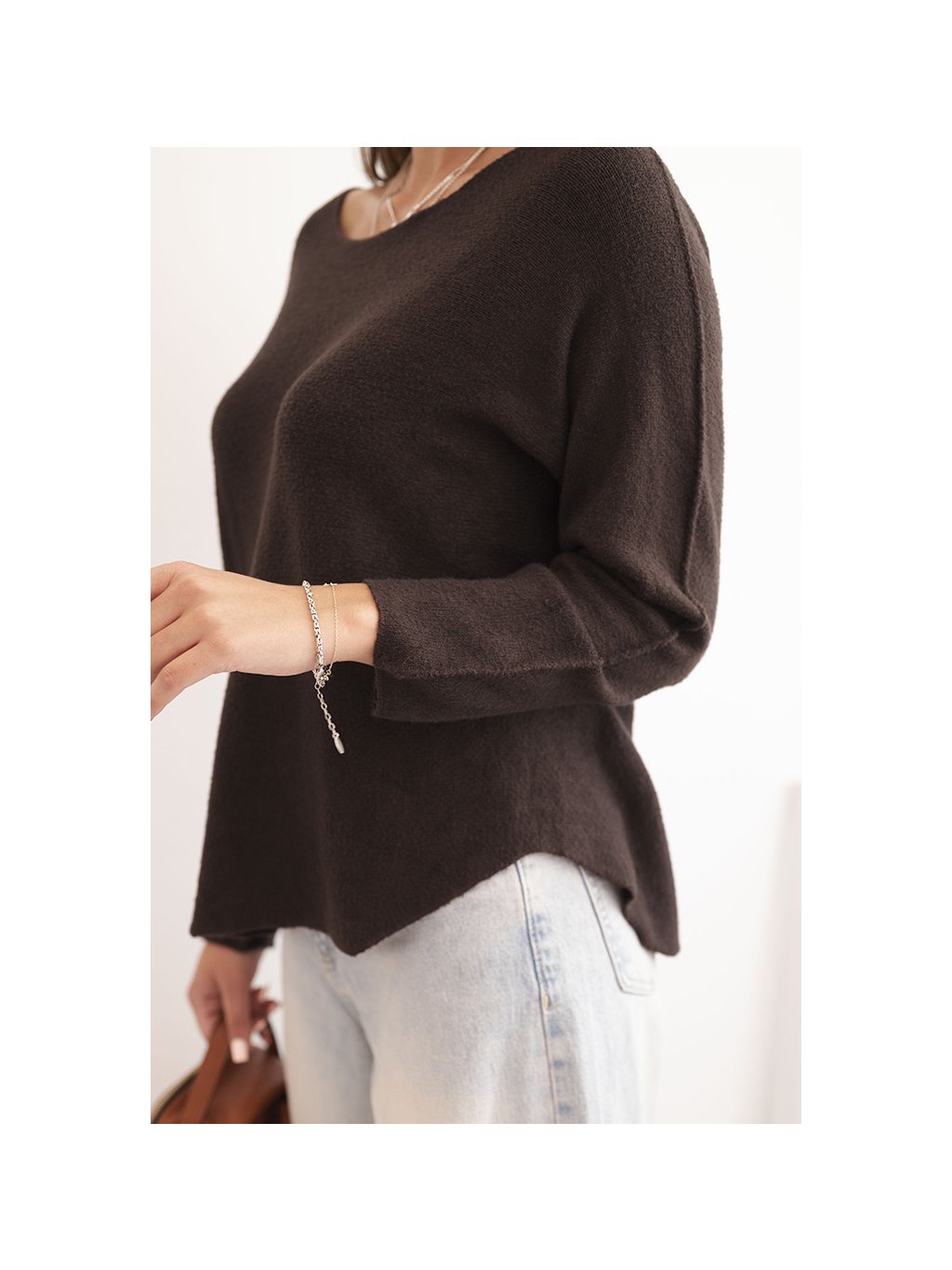 Dámský hnědý svetr z viskózy s kukatým výstřihem