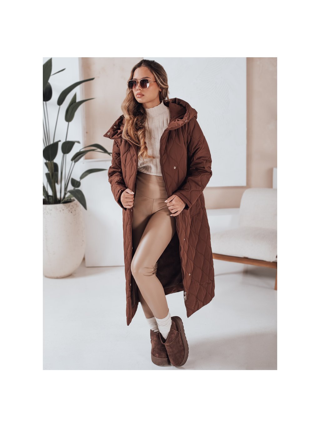 Dámský hnědý zimní prošívaný kabát LIKEMIRA