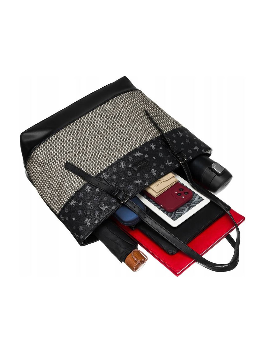 David Jones Černá vzorovaná shopper kabelka s nastavitelnou rukojetí