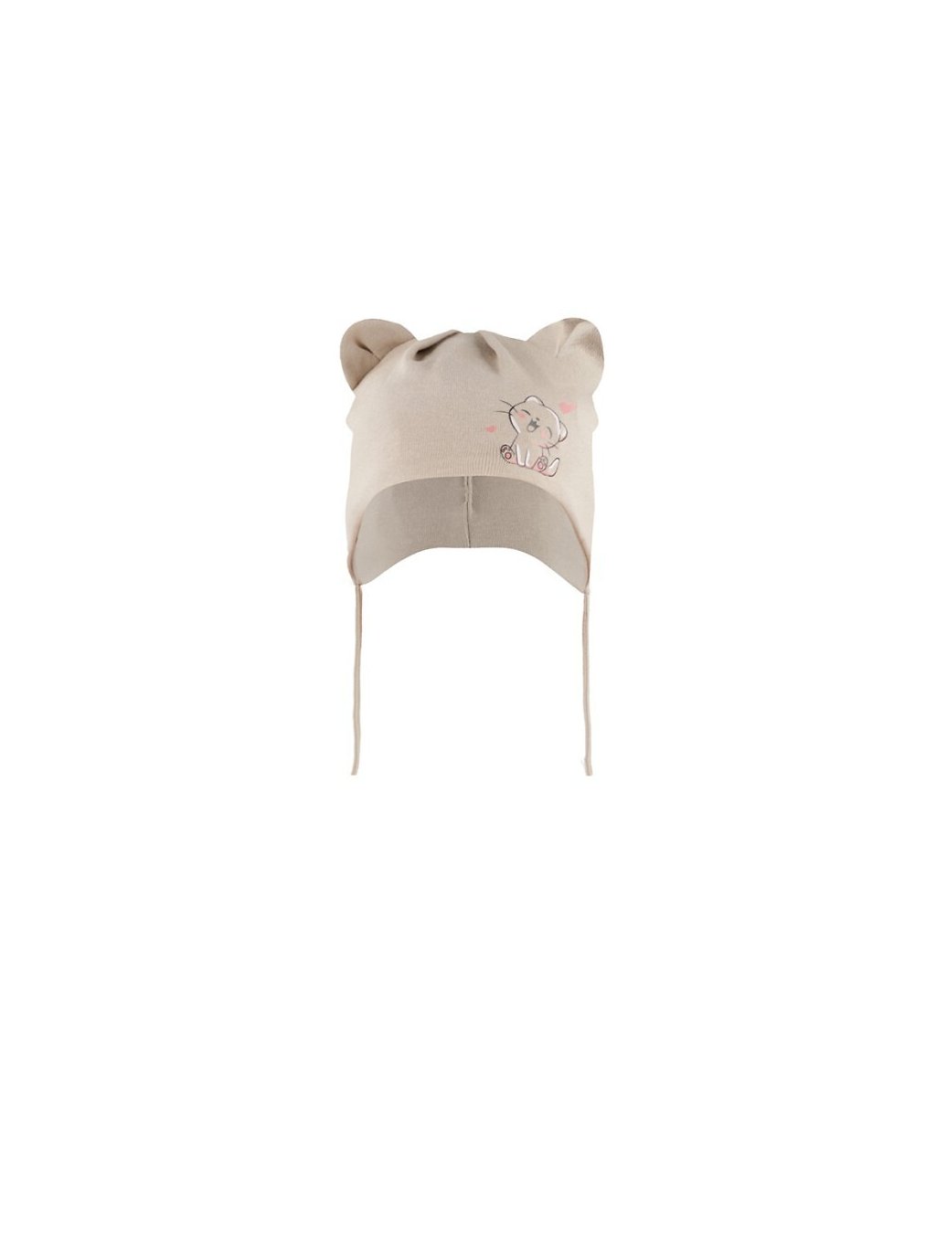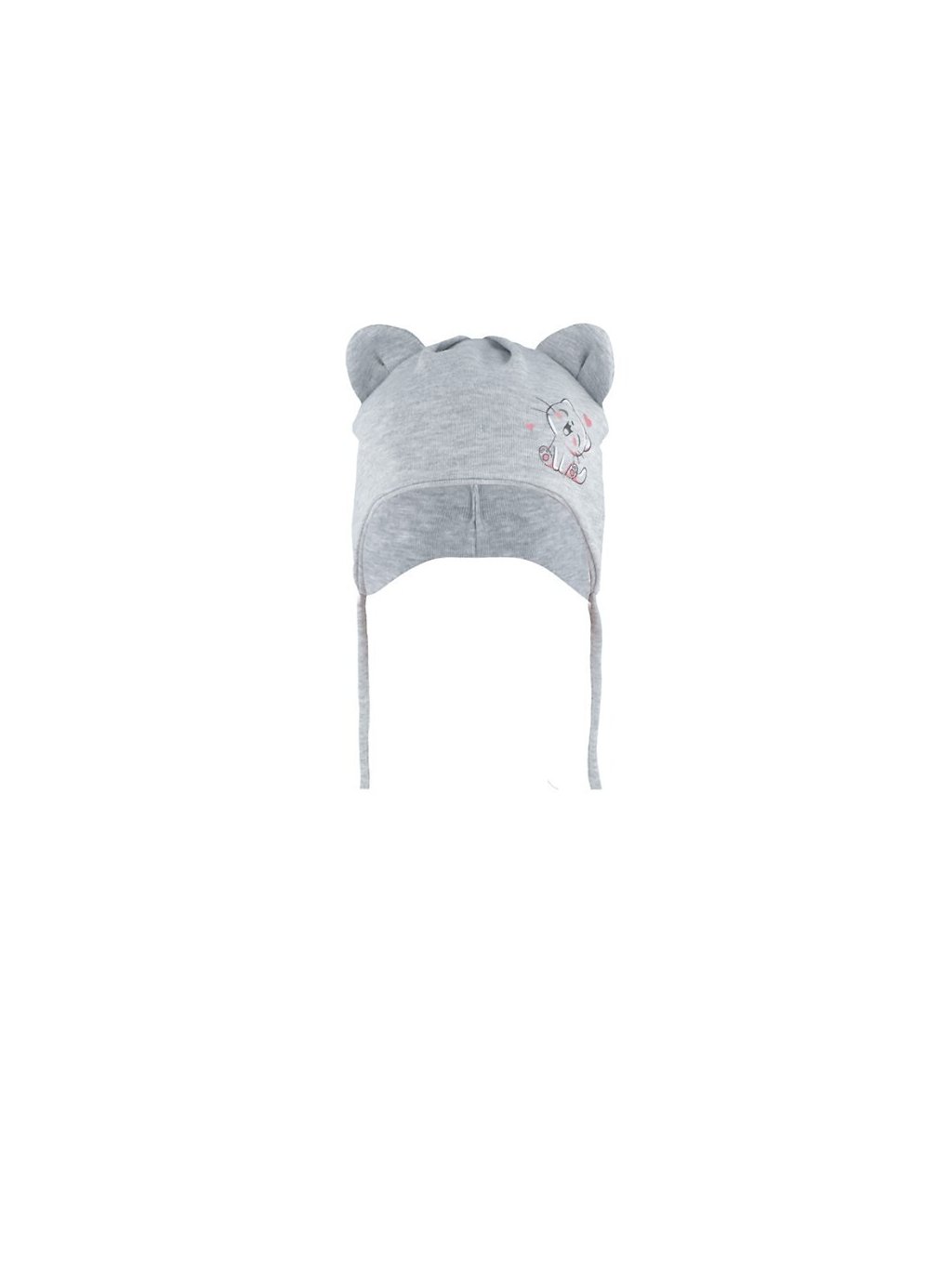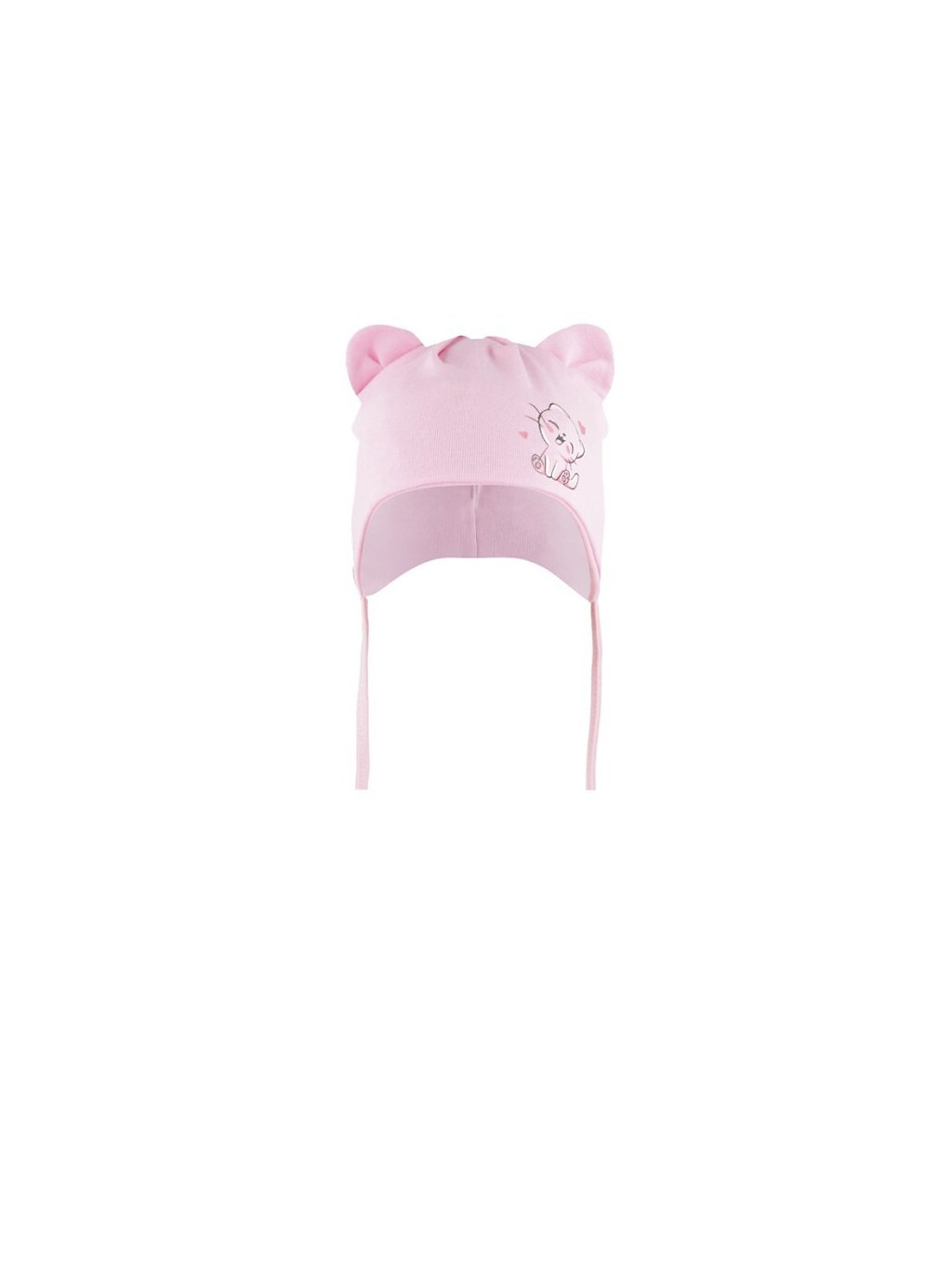 Dětská jarní čepice s ouškama a potiskem kočky AJS