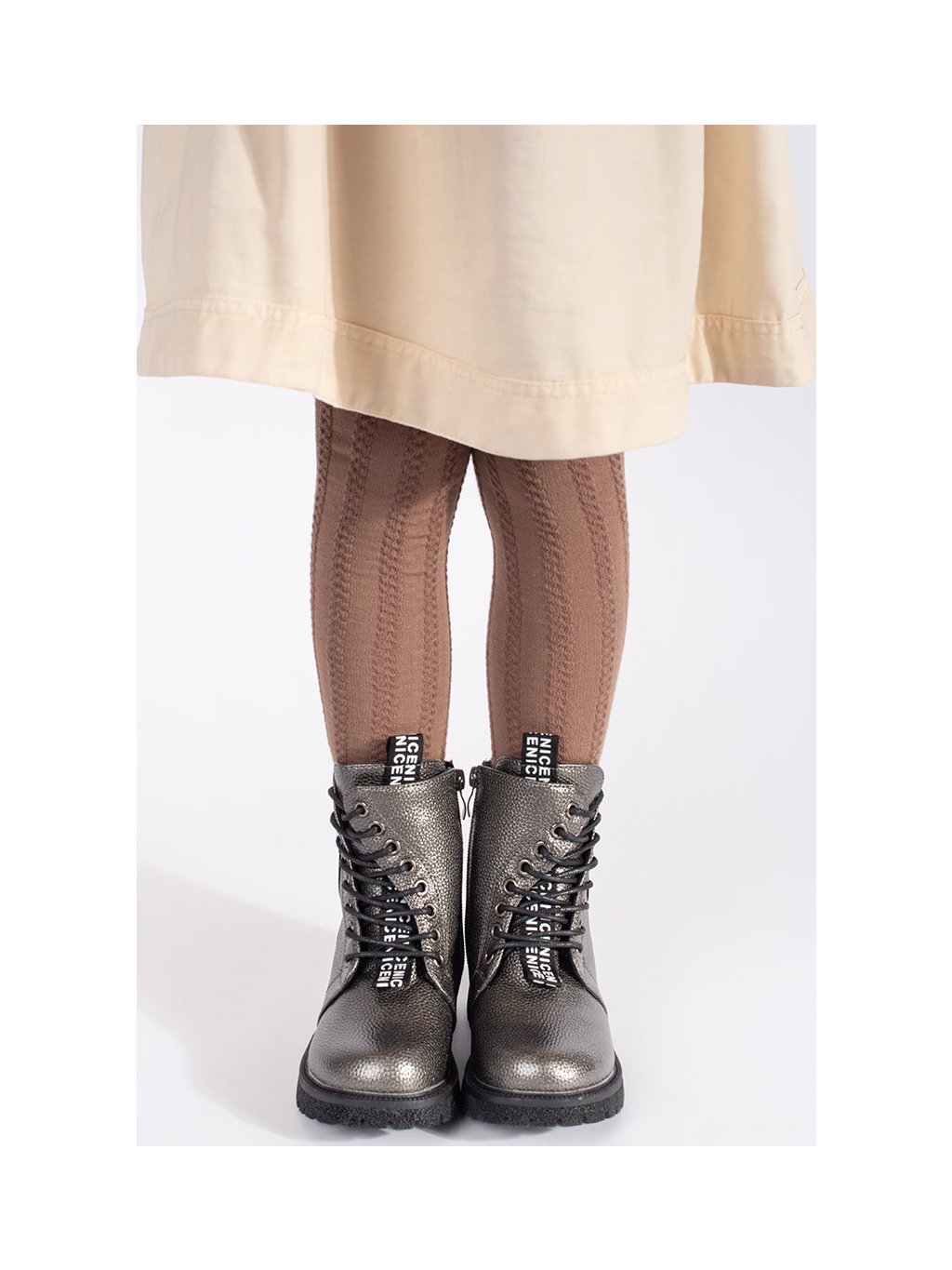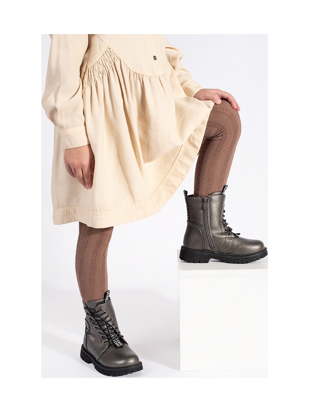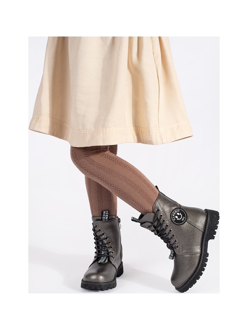 Dívčí stříbrné zateplené zimní boty se šněrováním