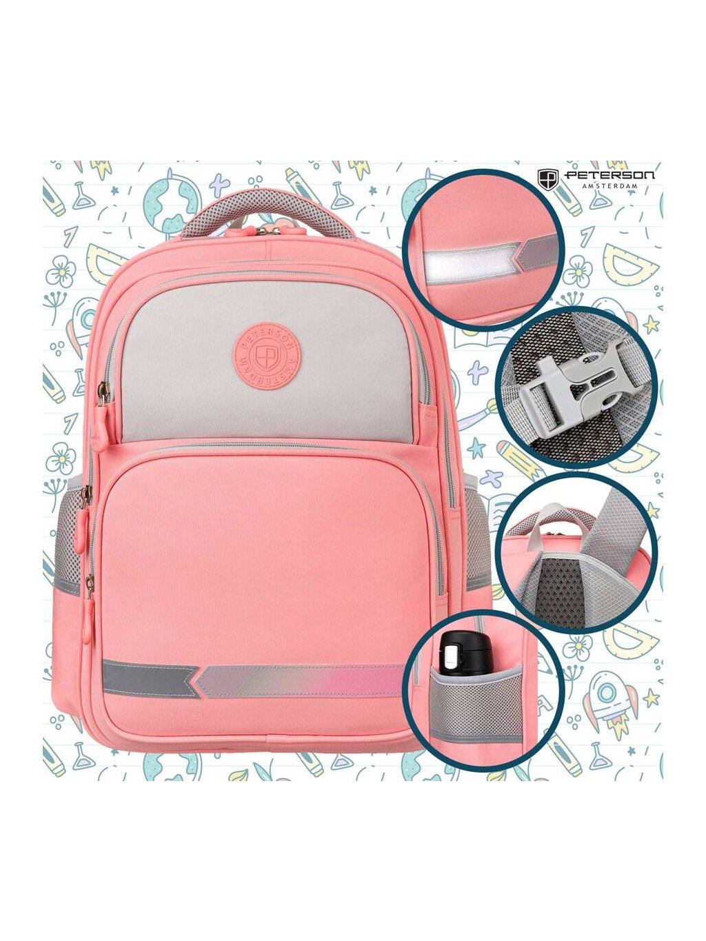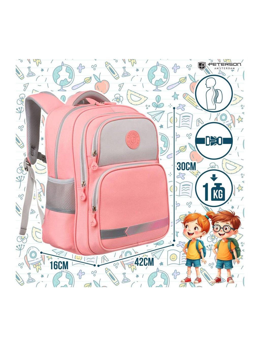 Dvoukomorový dívčí růžový školní batoh Peterson