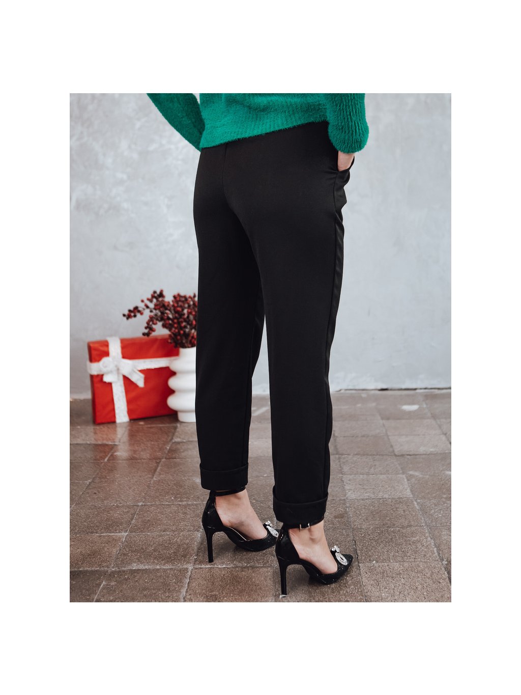 Elegantní dámské černé kalhoty s vysokým pasem ELEGANTIS