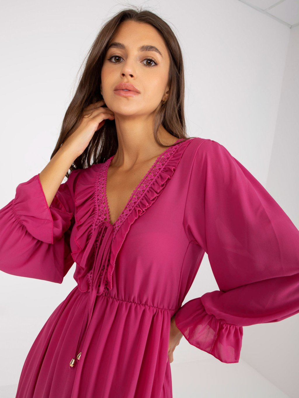 Modelka na obrázcích je vysoká 172 cm, obvod přes prsa má 88 cm, obvod pasu 63 cm a přes boky 92 cm.