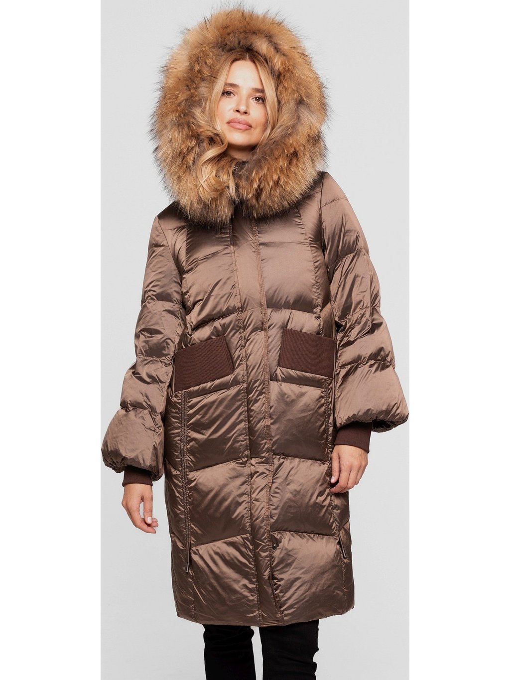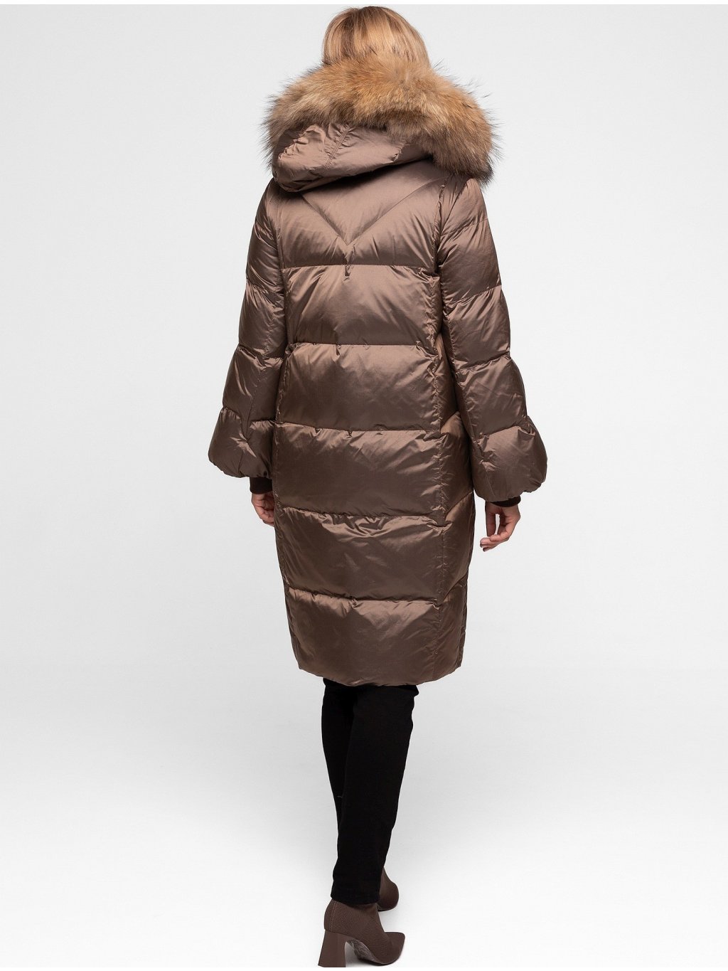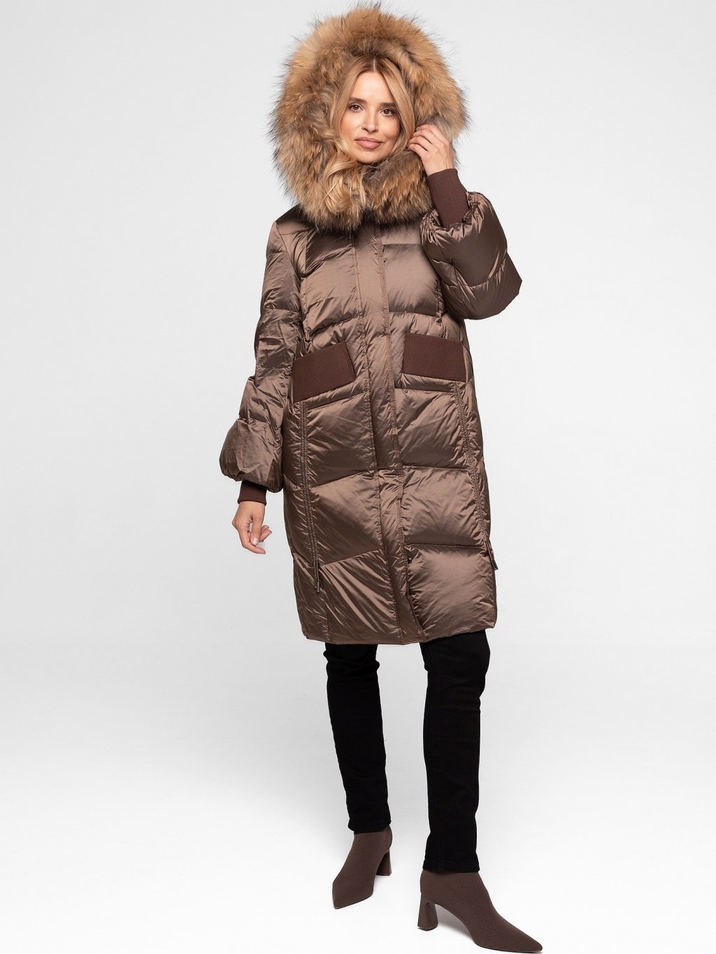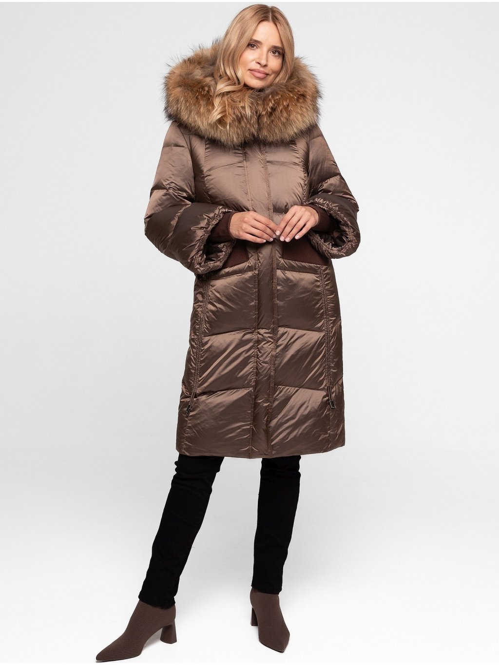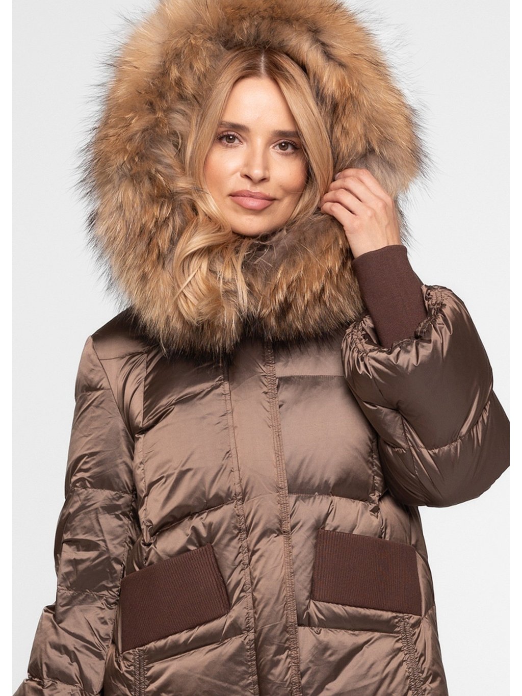 Hnědá dámská péřová bunda s přírodní kožešinou