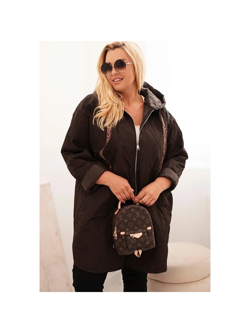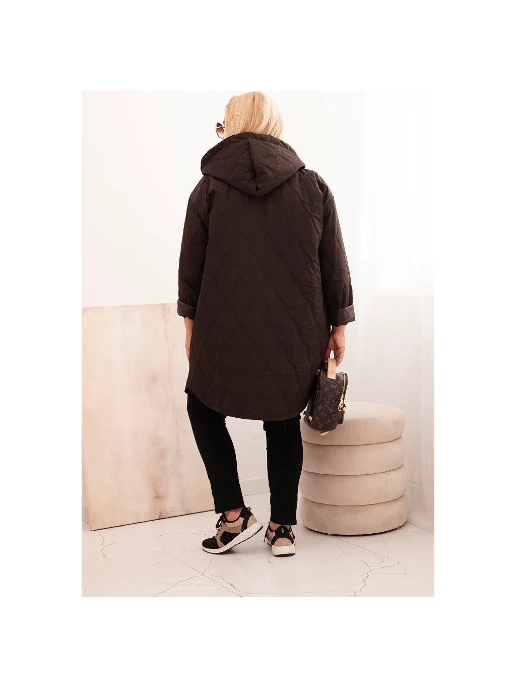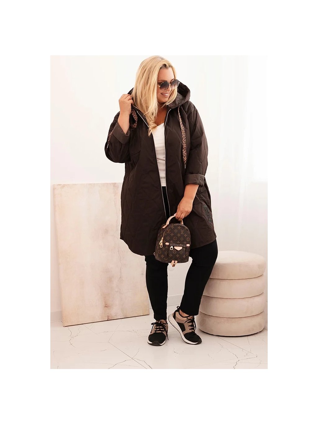 Cappuccino dámská plus size prošívaná bunda s kapucí