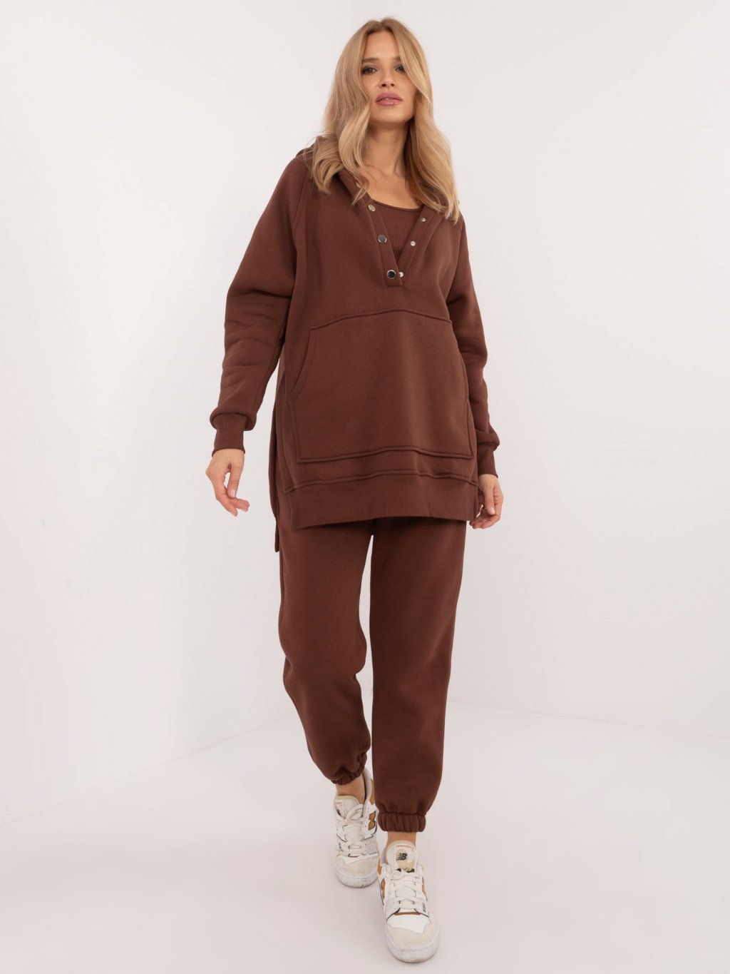 Hnědá dámská tepláková souprava s crop-topem
