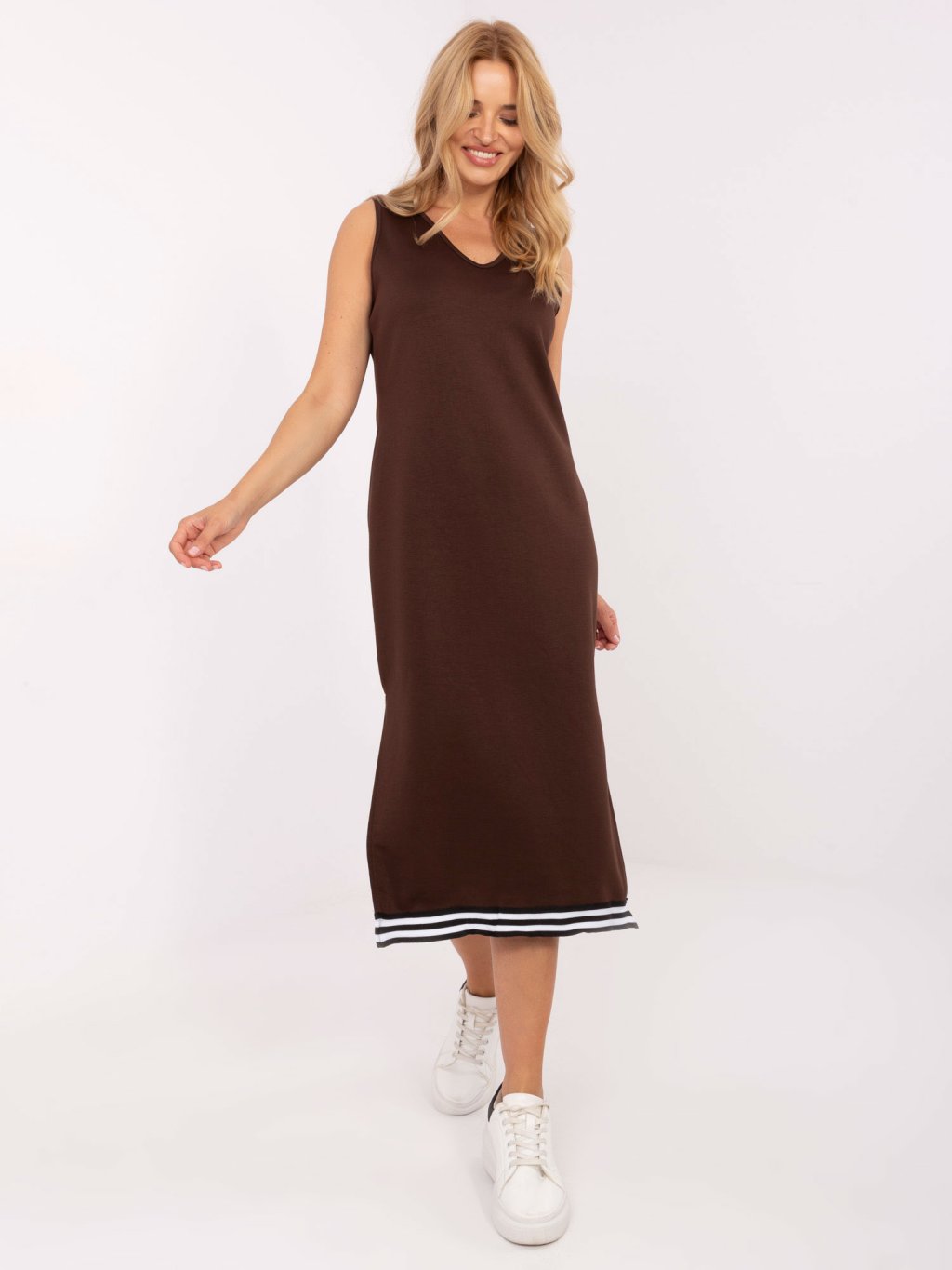Hnědá dámská viskózová dvoudílná souprava s ozdobnými manžetami