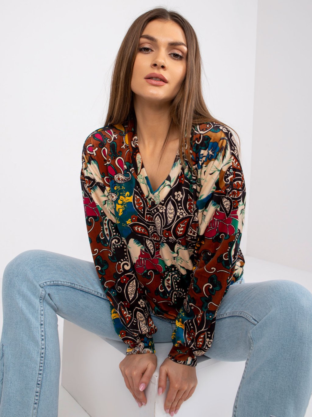 Hnědá halenka Ruby s barevnými vzory