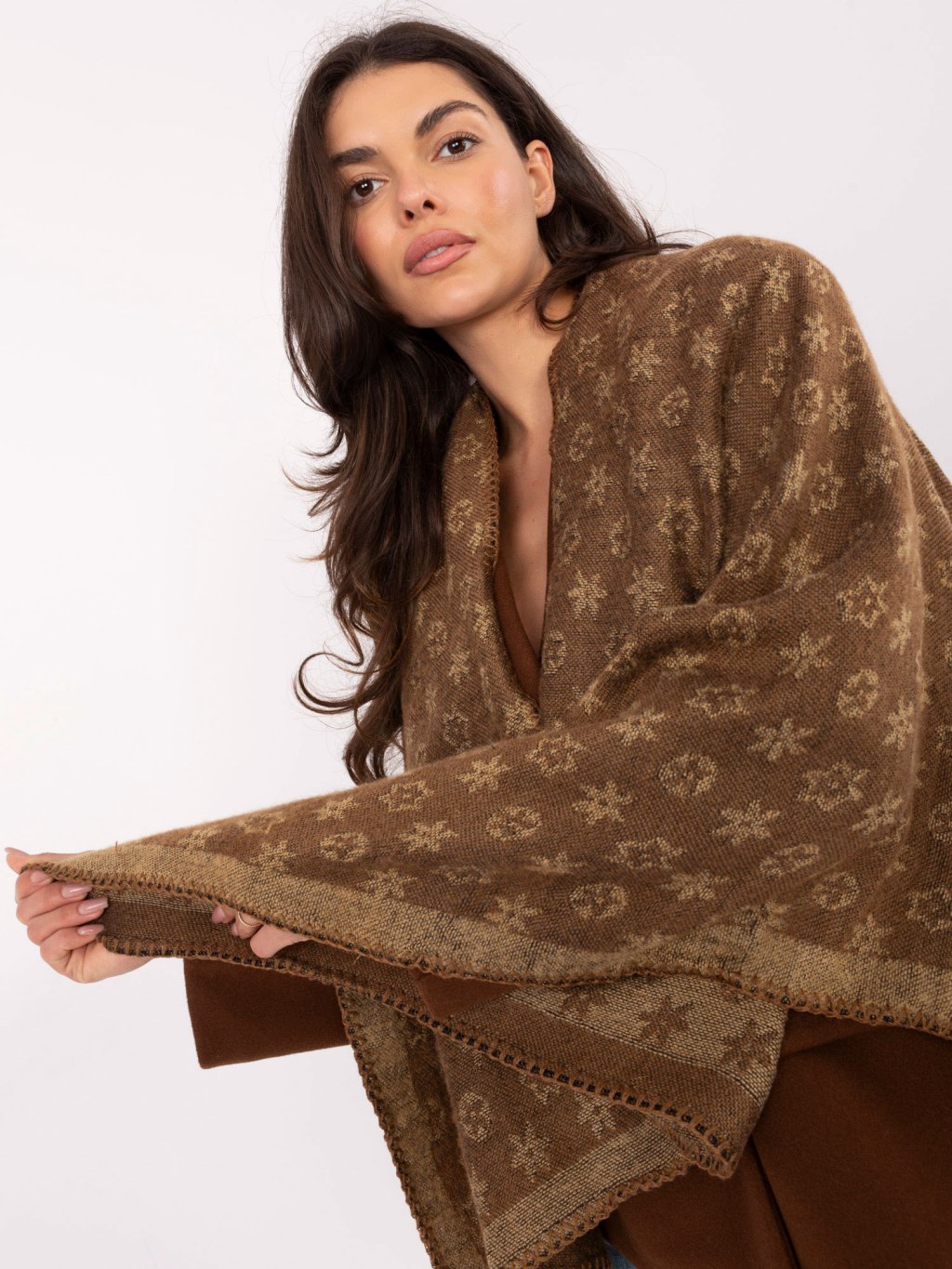 Hnědé dámské pončo s potiskem