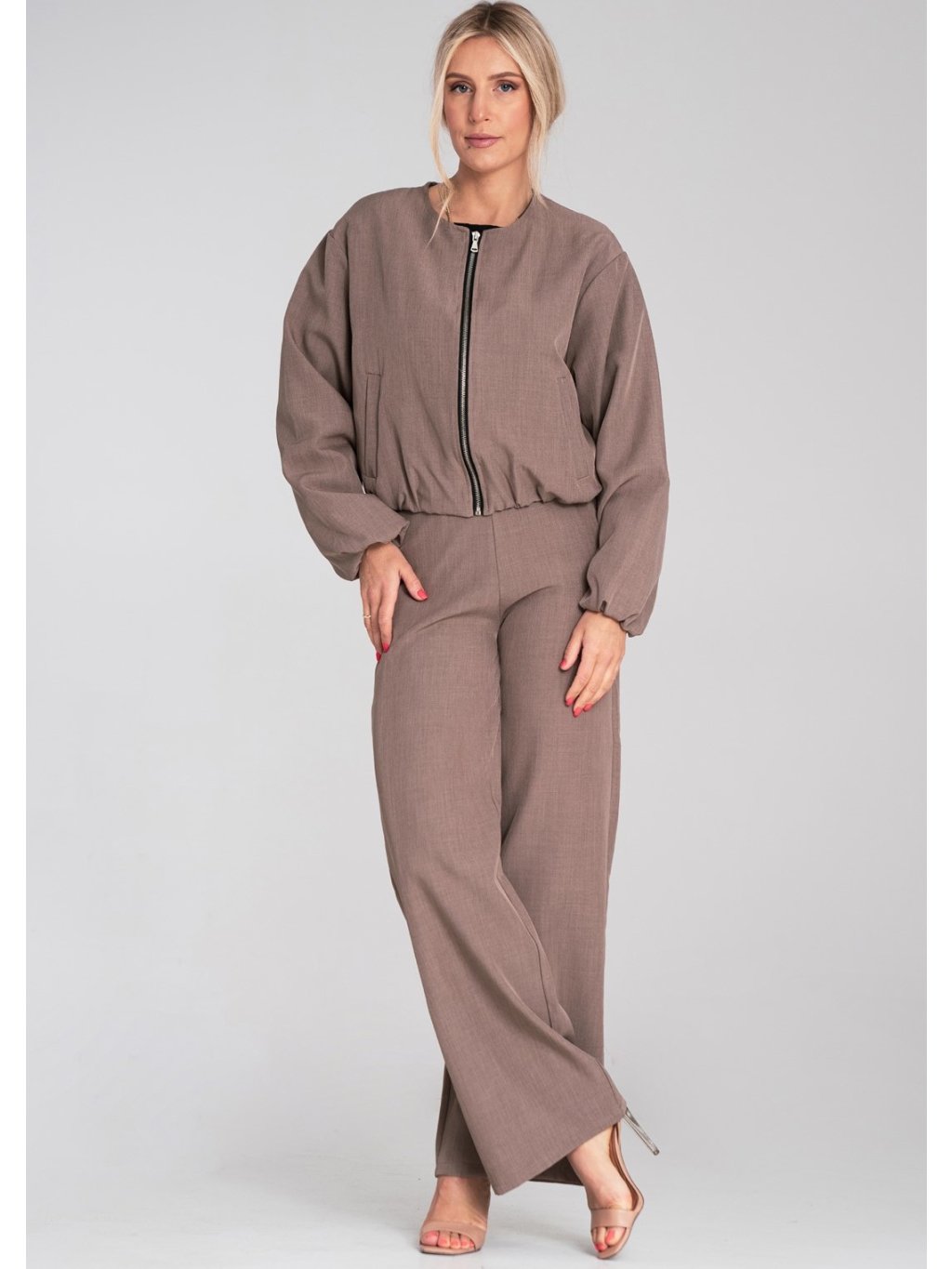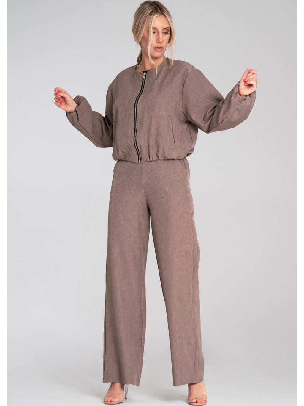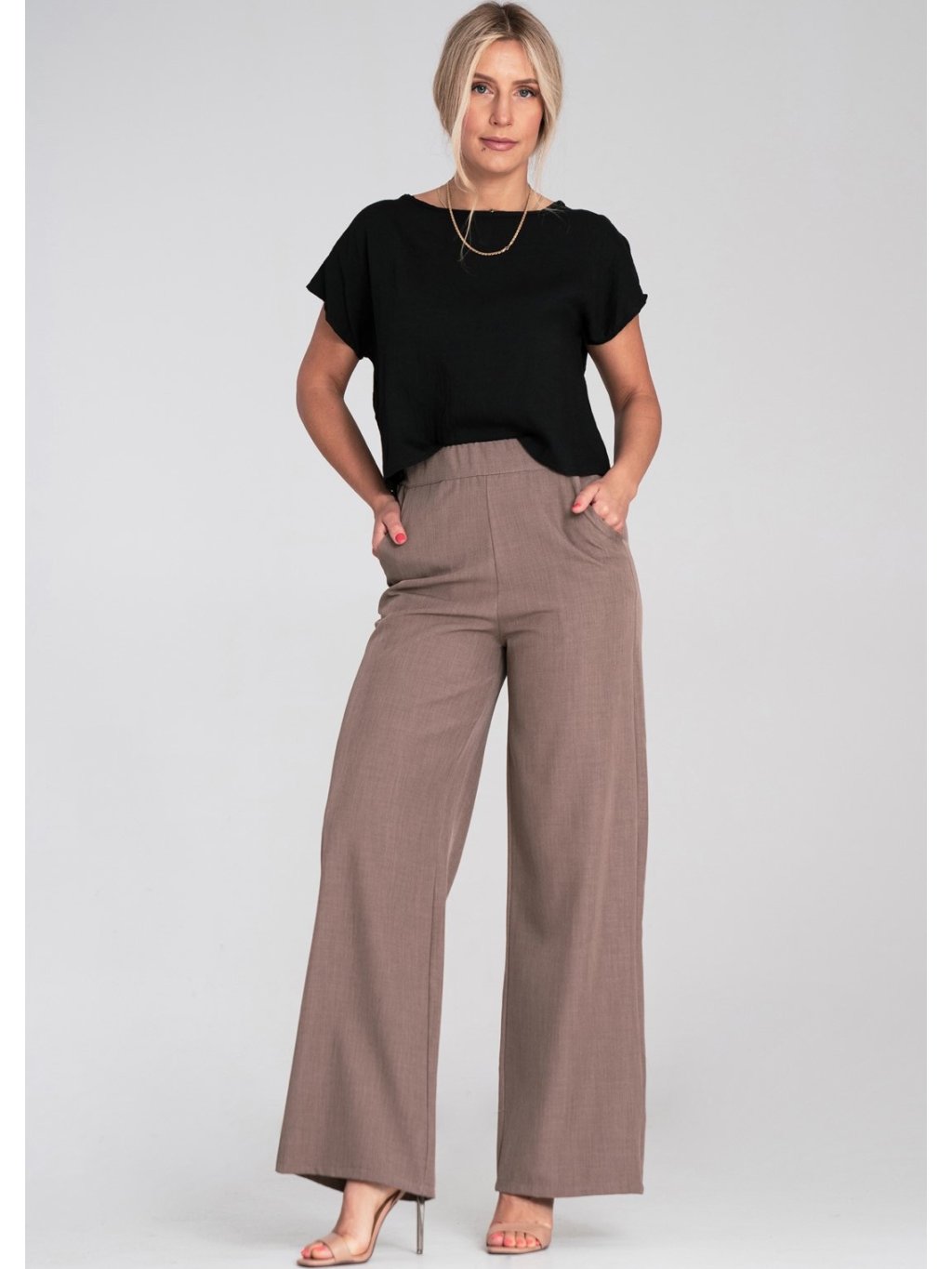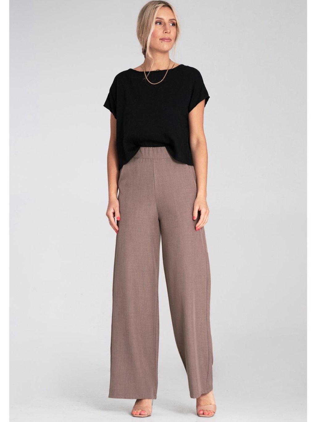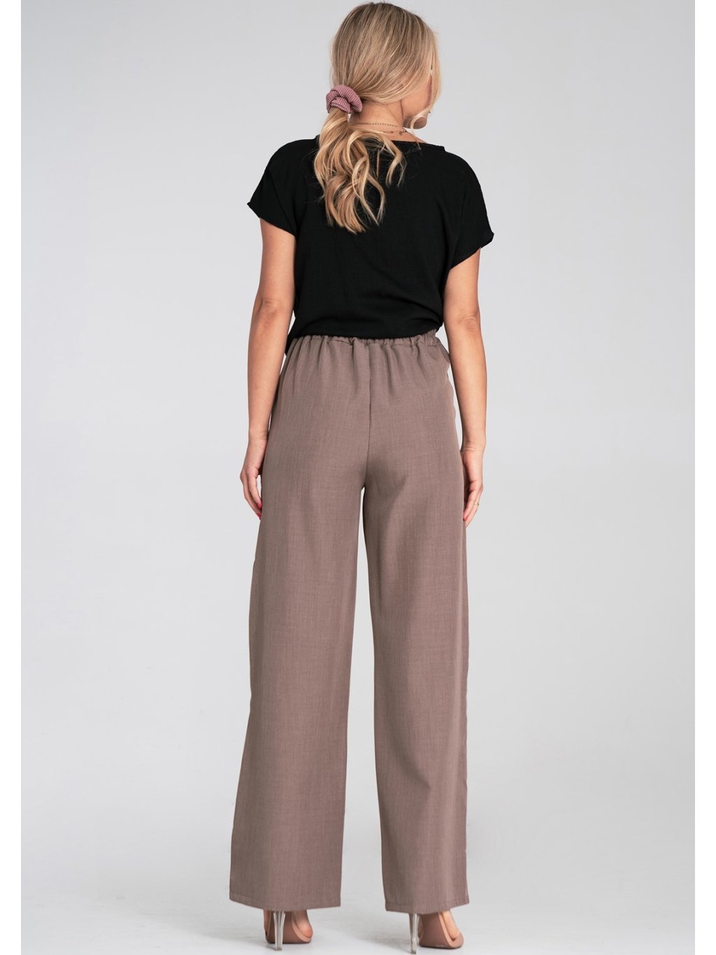 Hnědé dámské široké kalhoty s elastickým pasem