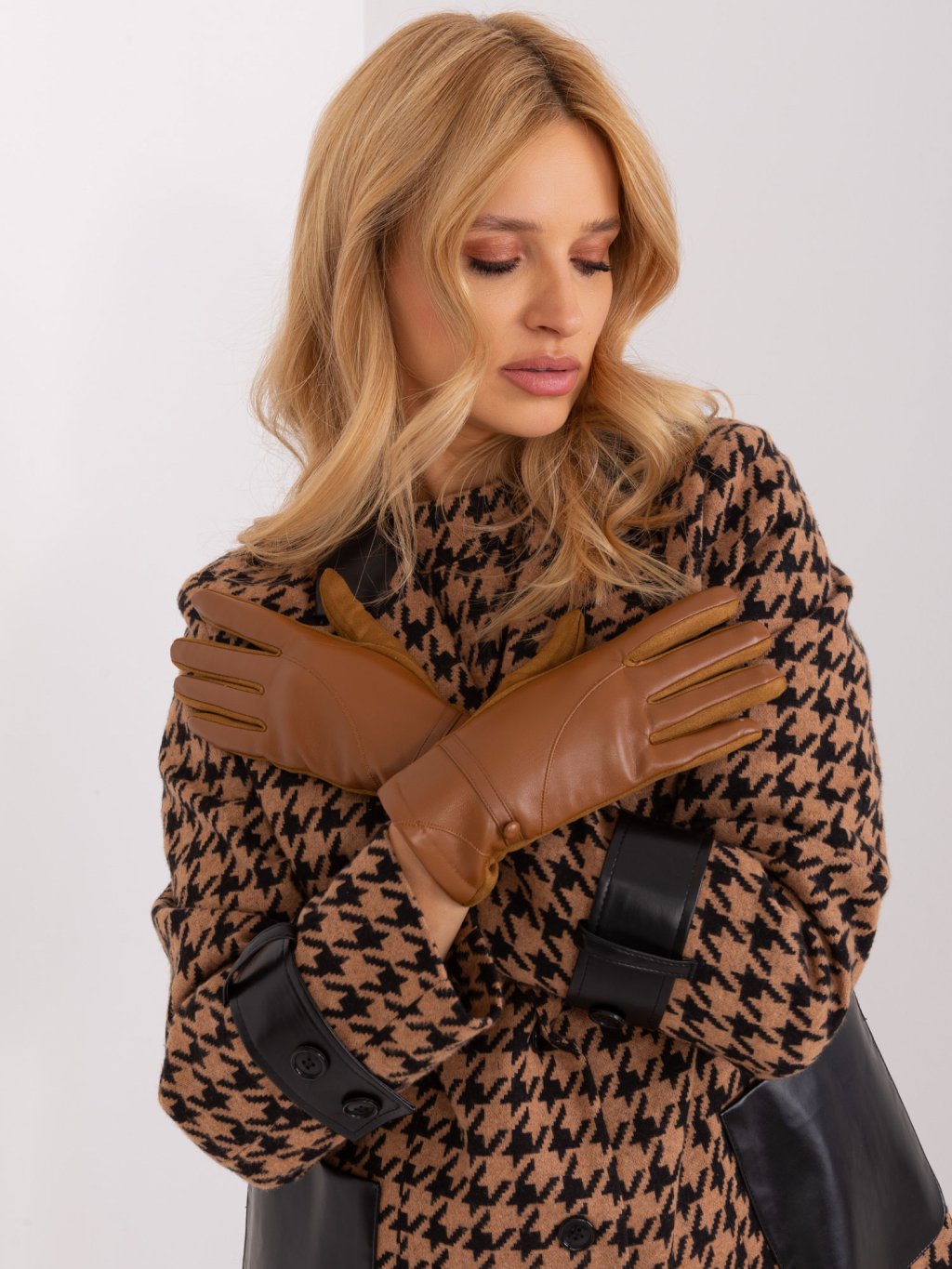 Hnědé koženkové rukavice