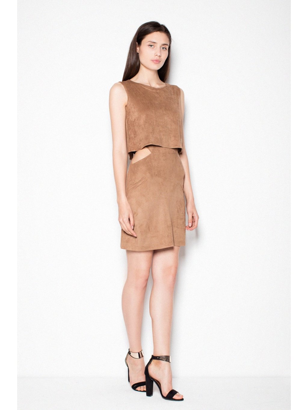 Hnědé šaty s výkrojky VT061 Brown
