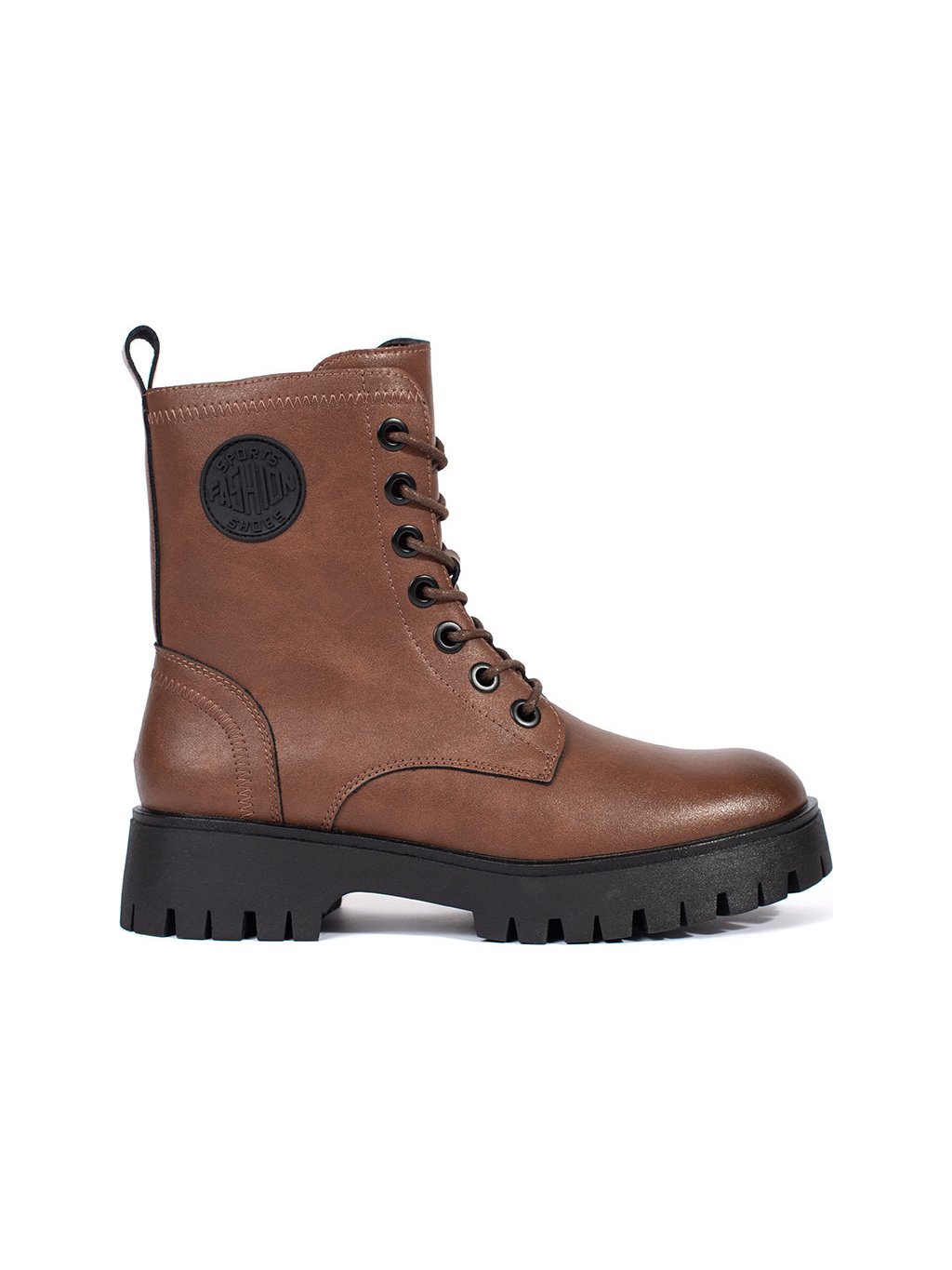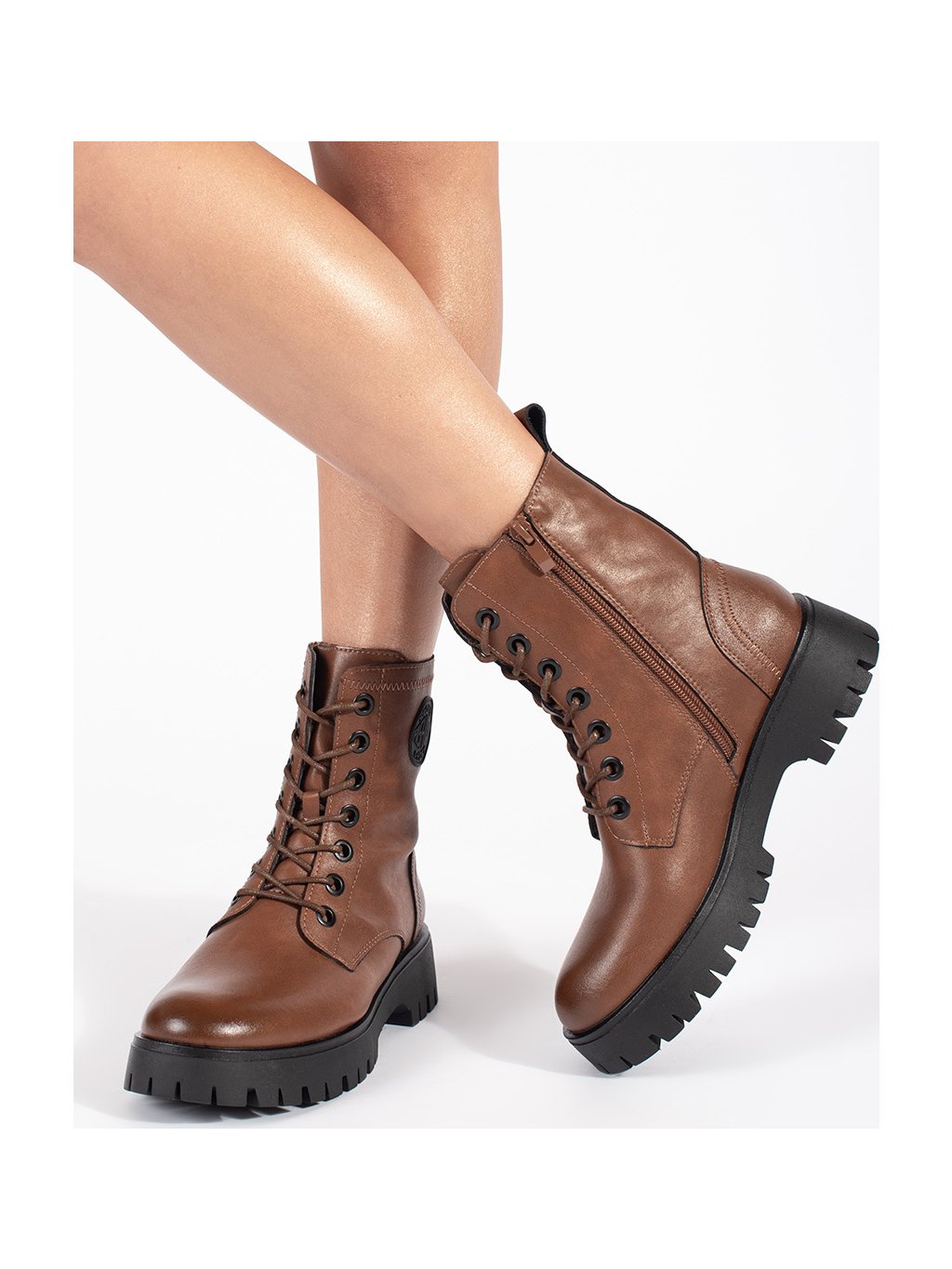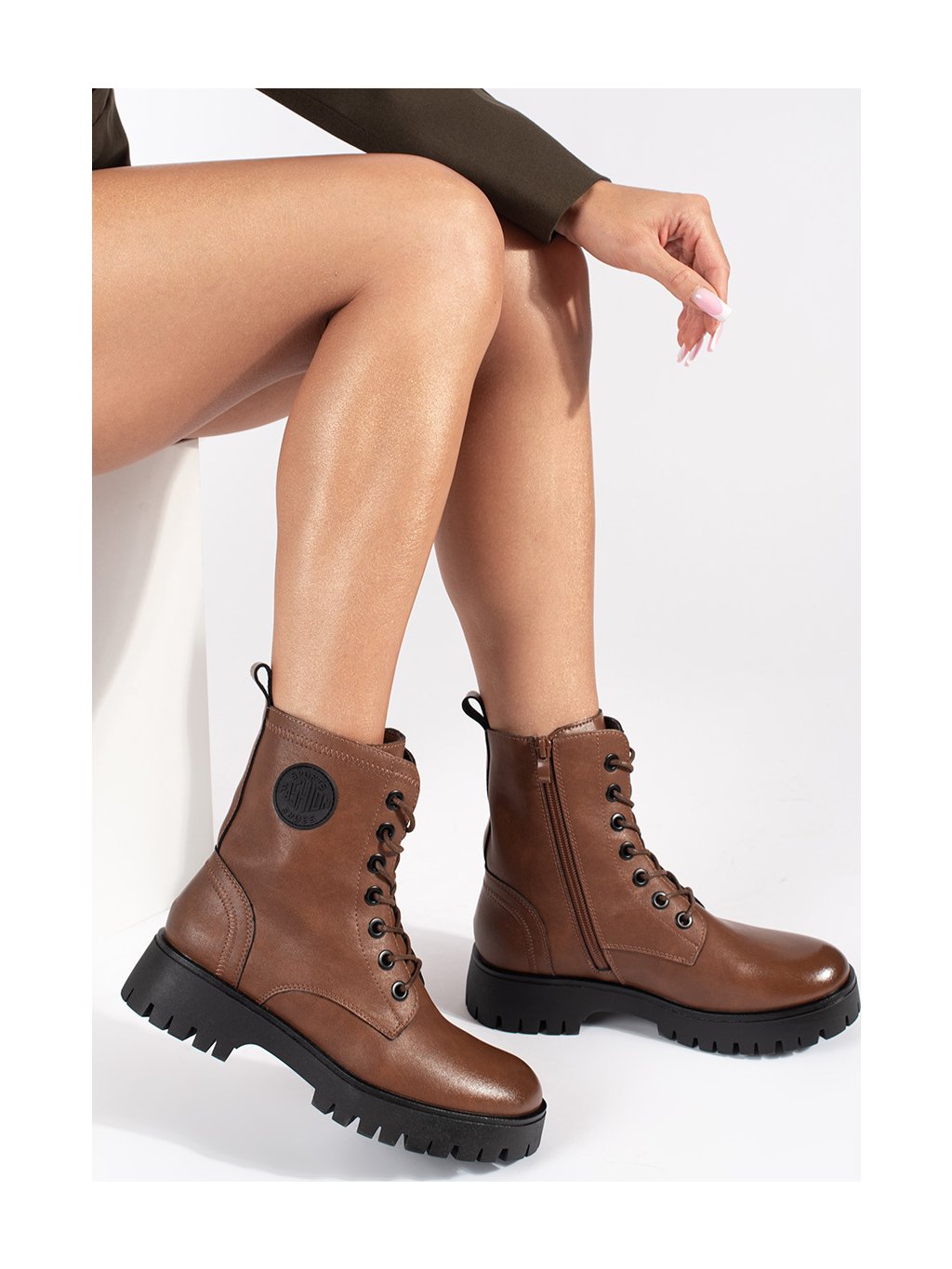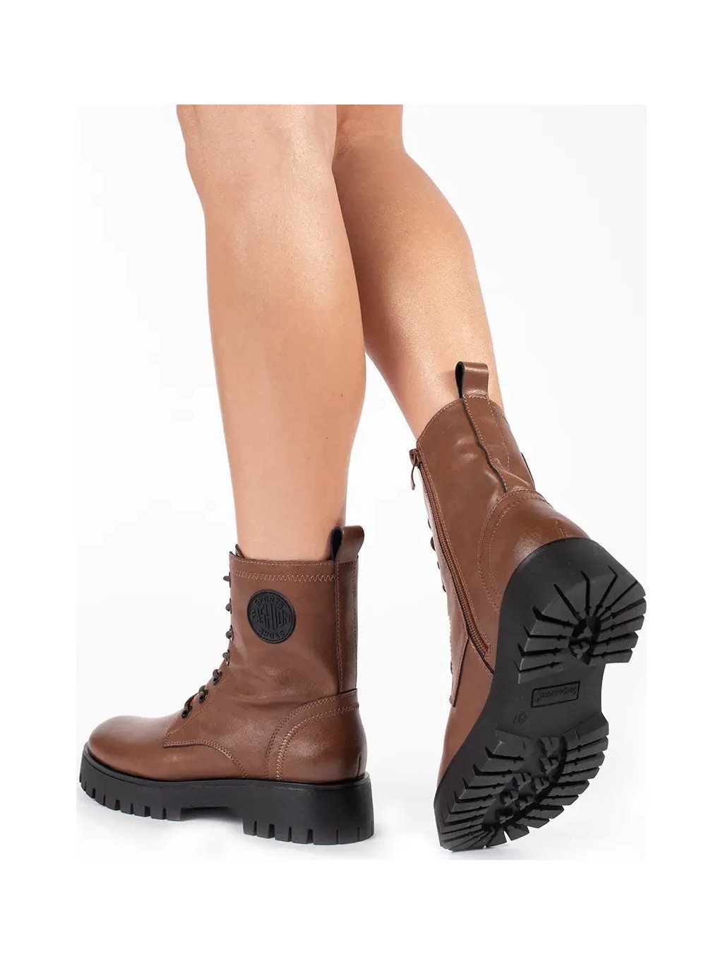Hnědé šněrovací kožené dámské kotníkové boty na platformě Sergio Leone Hnědá