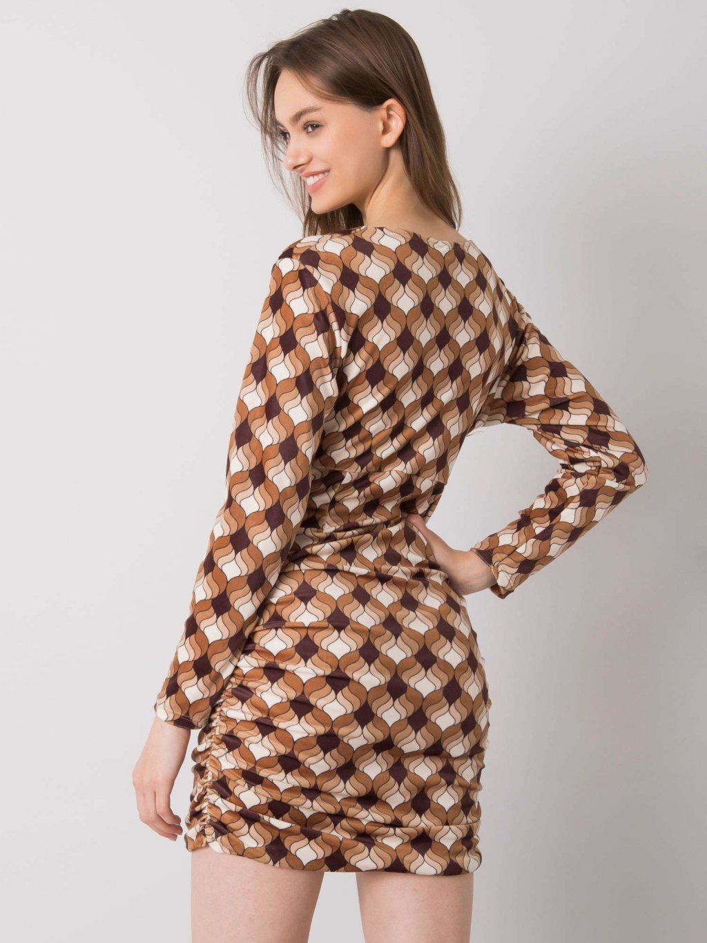 Hnědé vzorované mini šaty