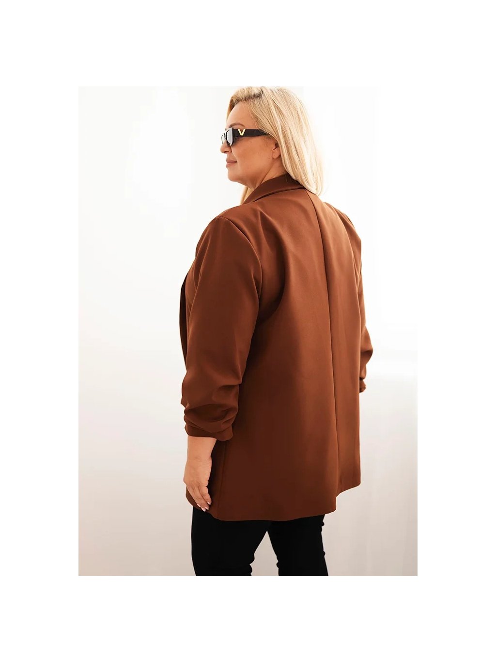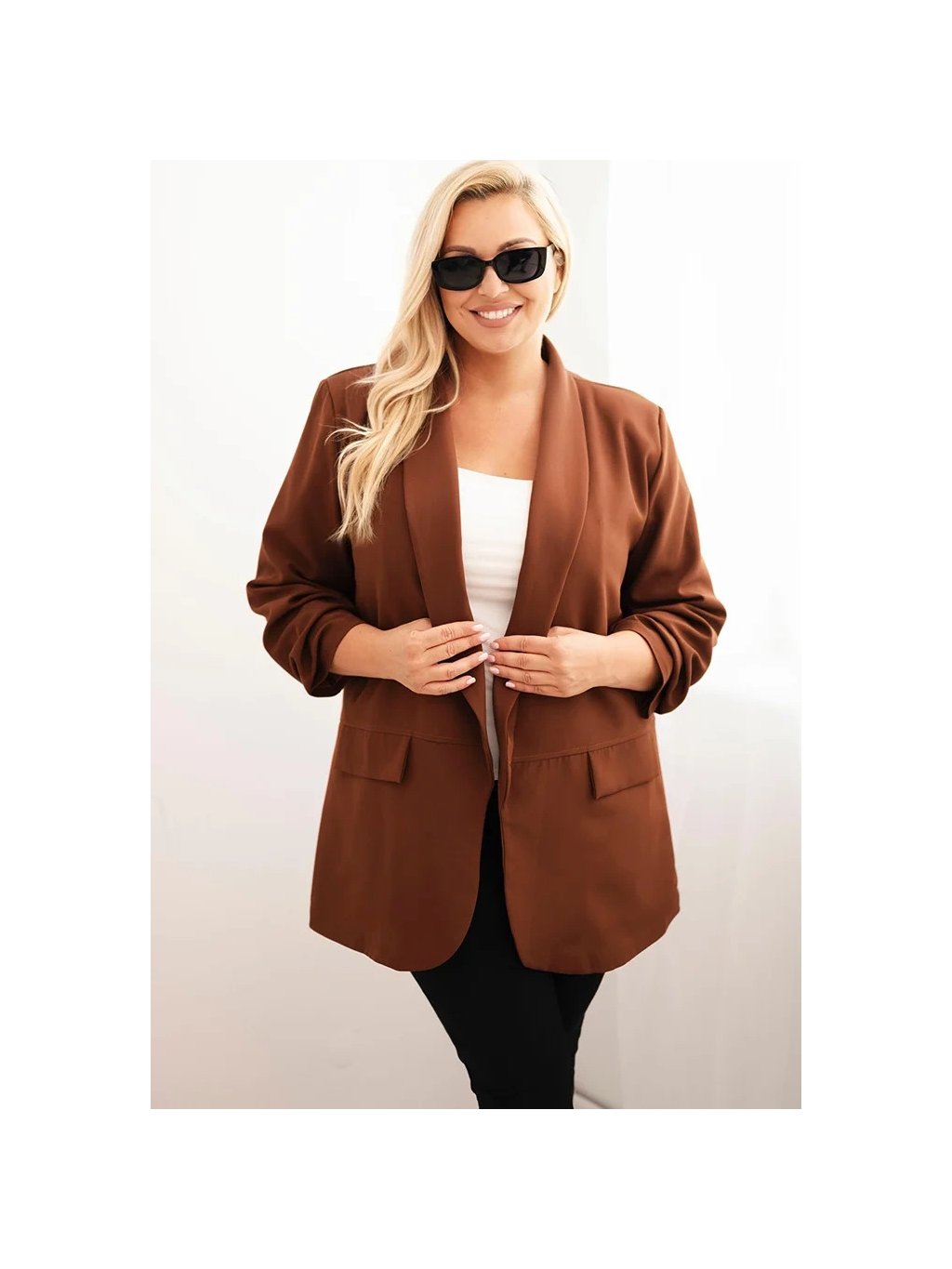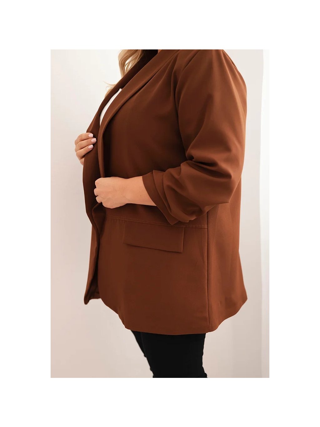 Hnědý dámský elegantní plus size blejzr