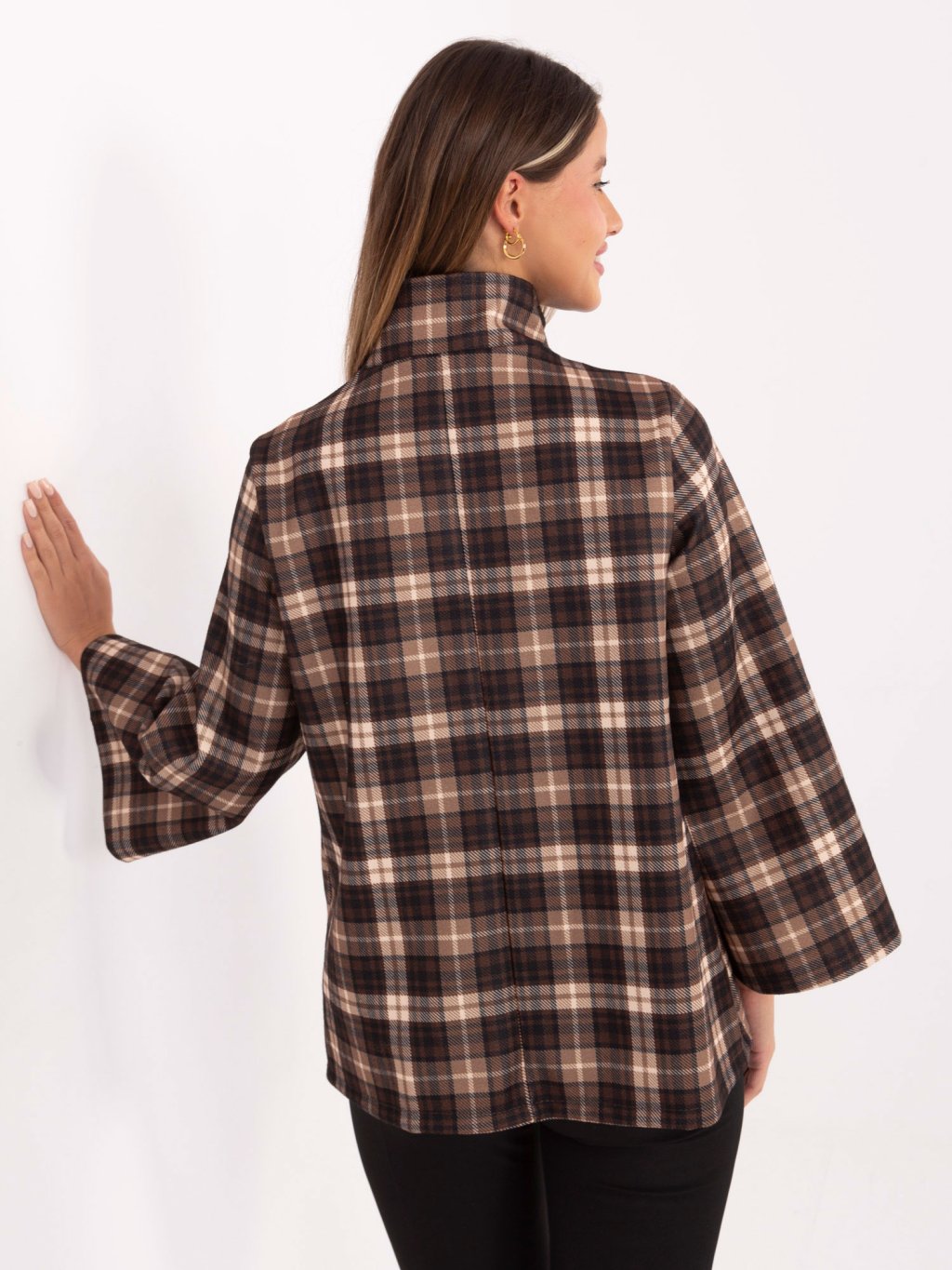 Hnědý dámský károvaný oversize kabát
