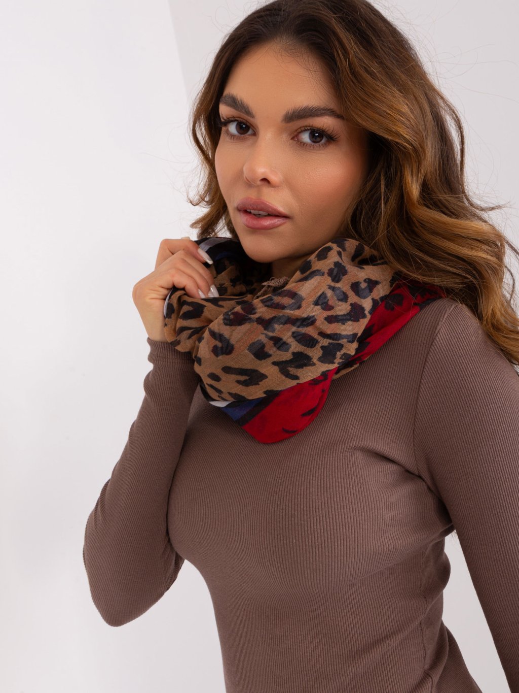 Hnědý šátek s leopardím vzorem