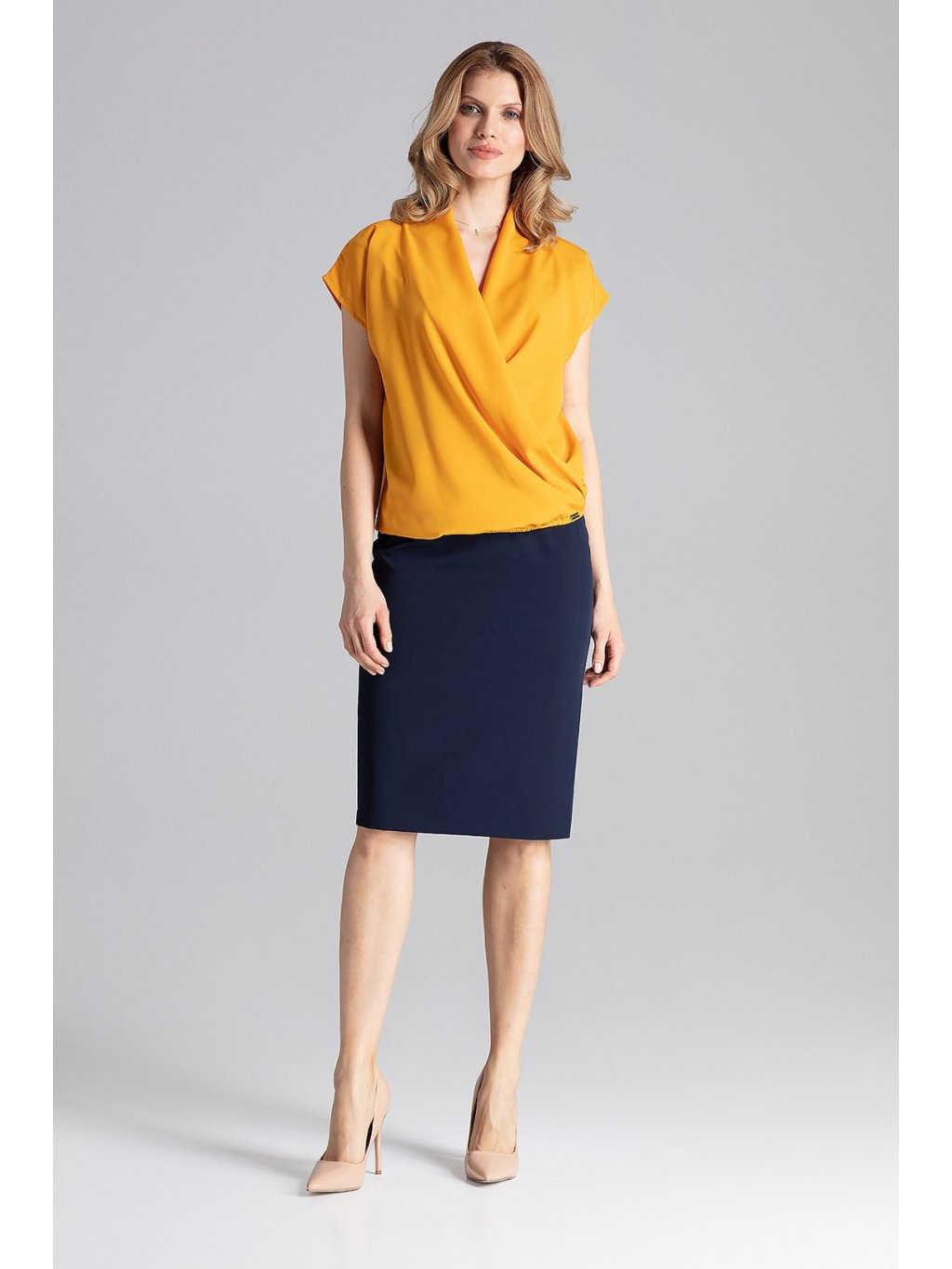 Hořčicová překládaná blůza