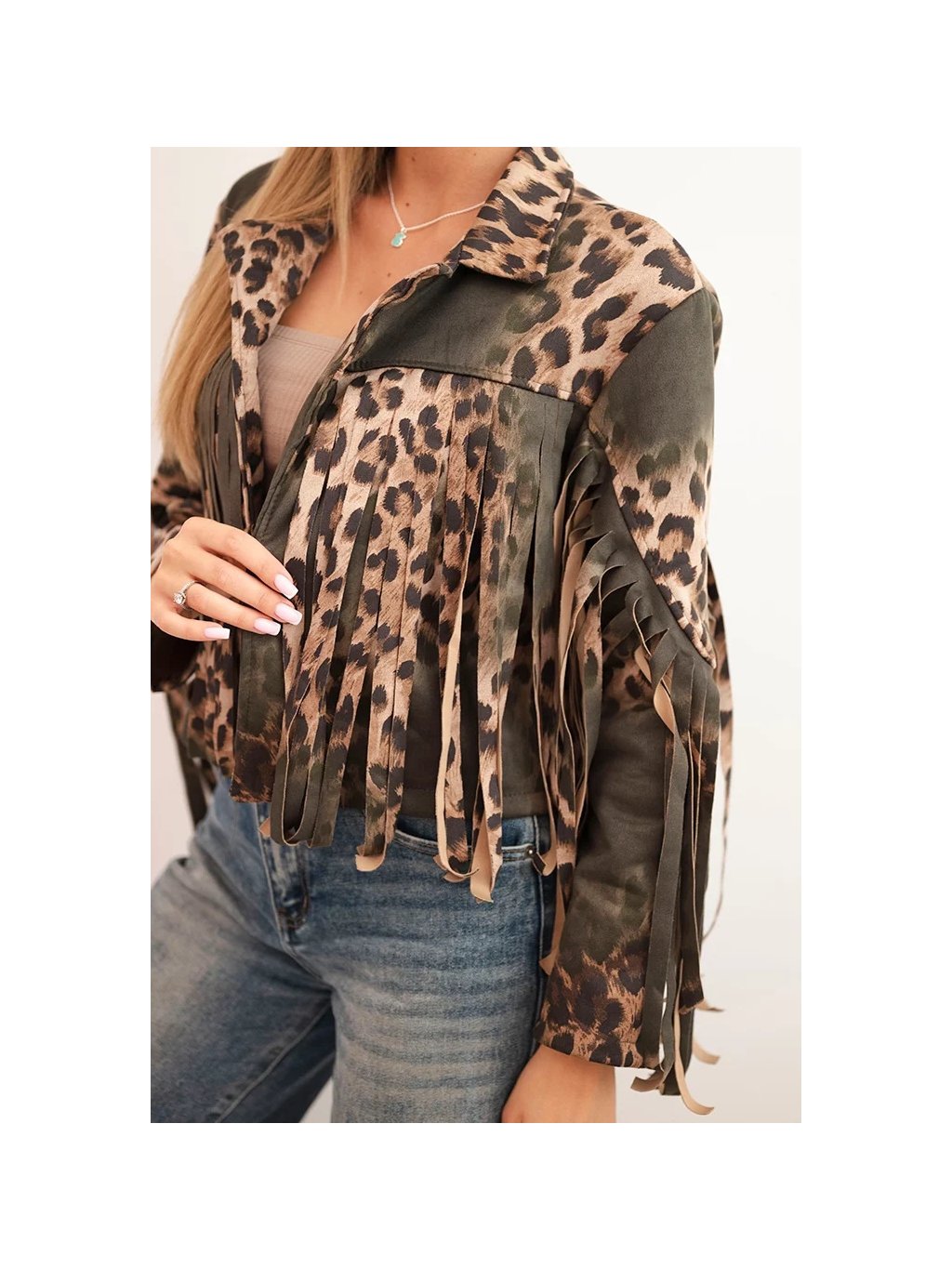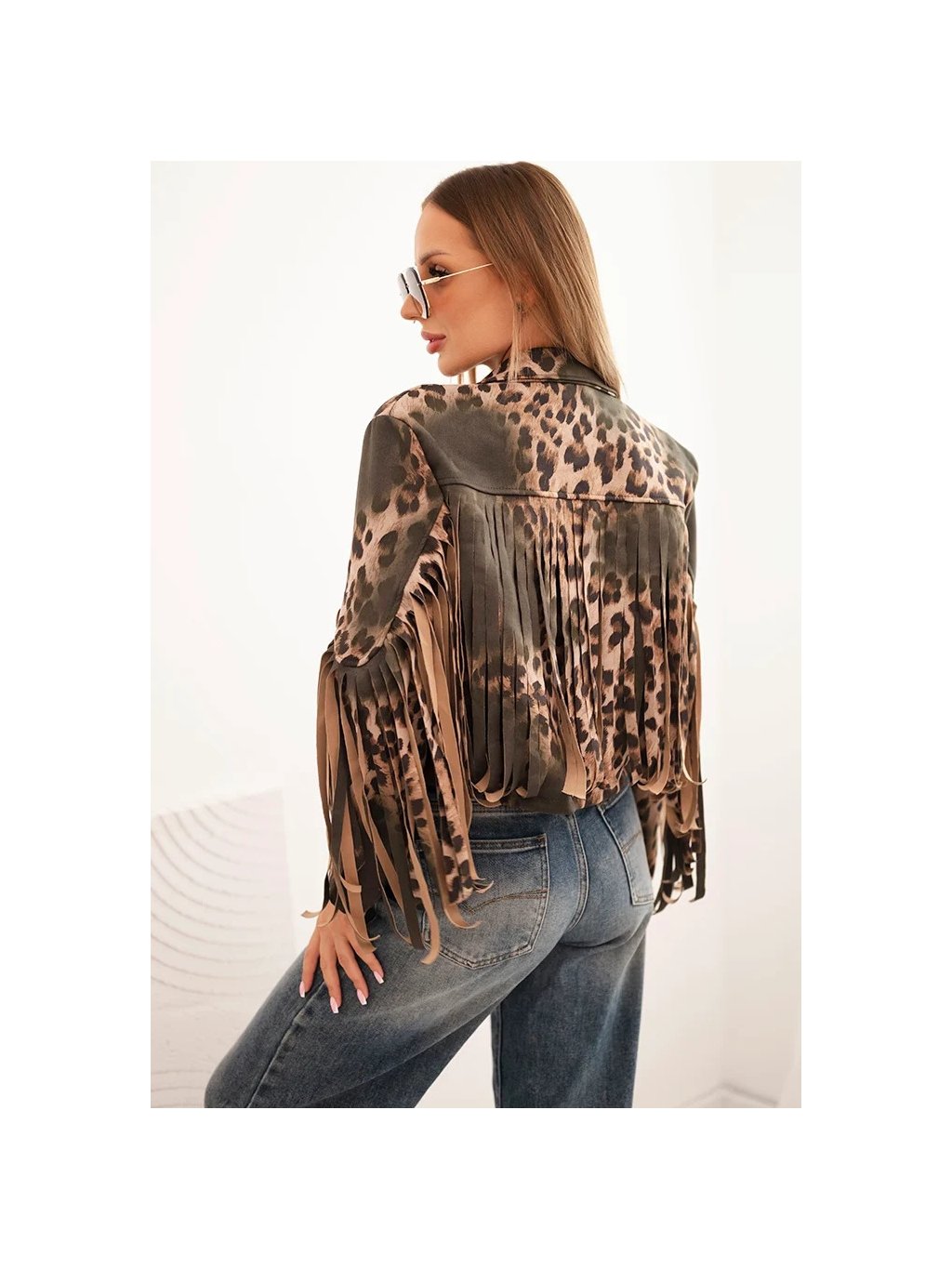 Dámská bunda z viskózy s třásněmi a leopardím vzorem
