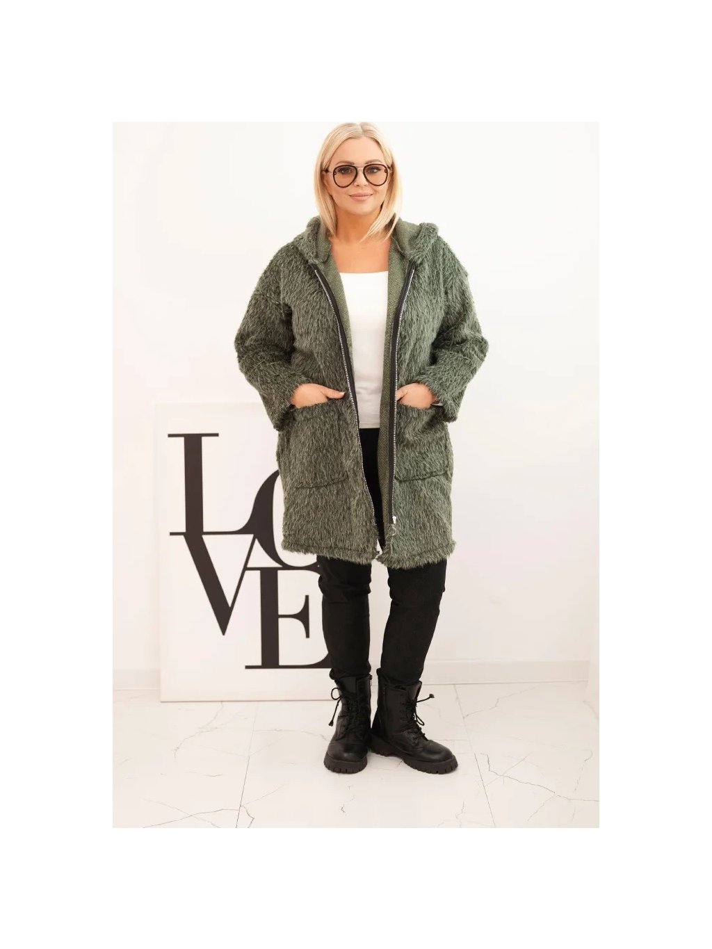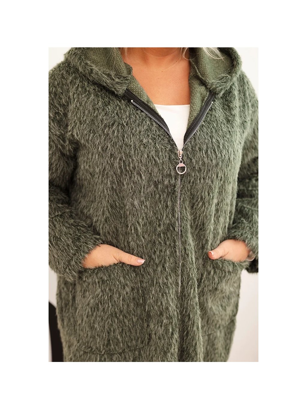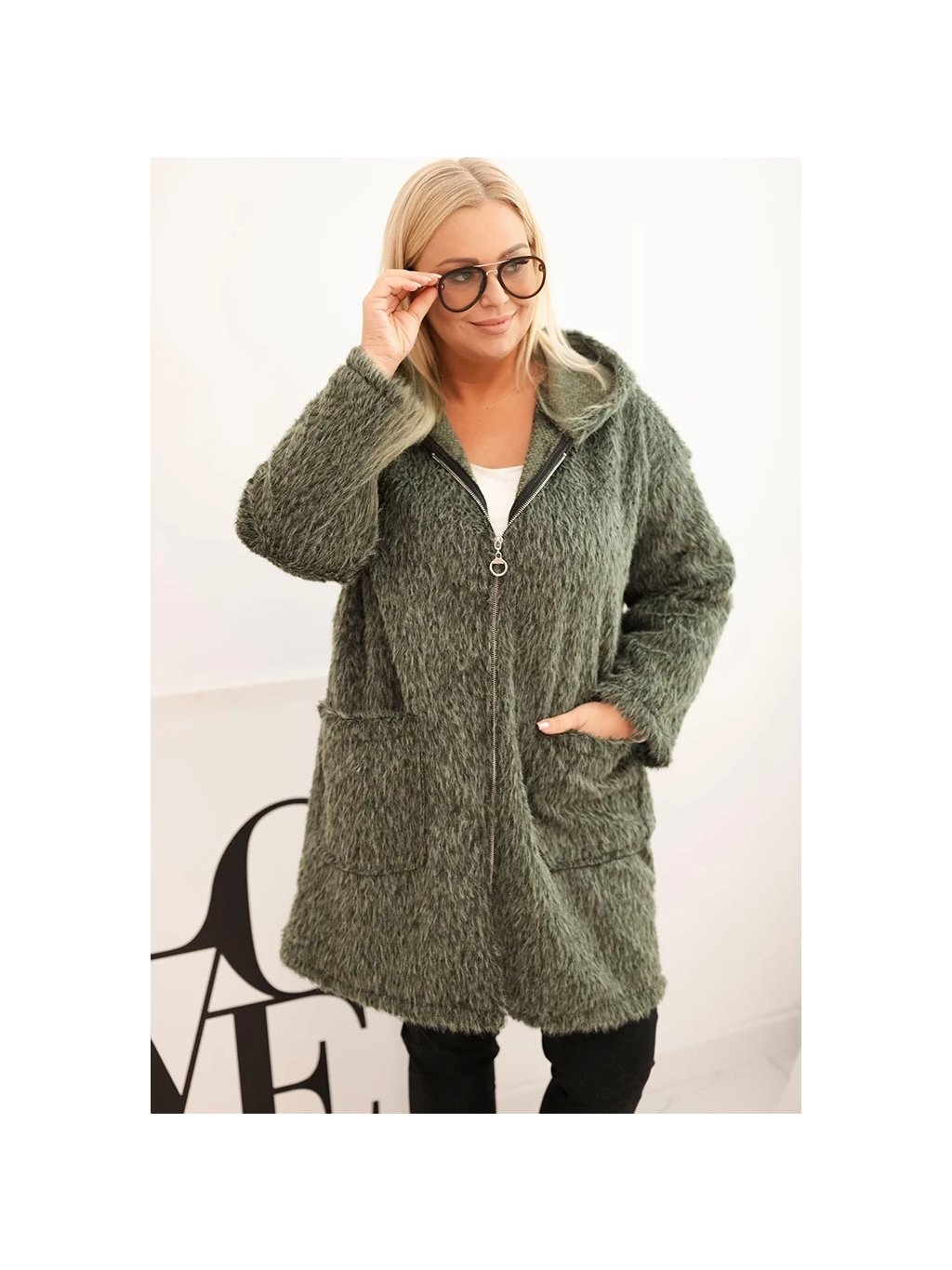 Khaki dámský viskózový Plus Size kabát na zip s kapucí