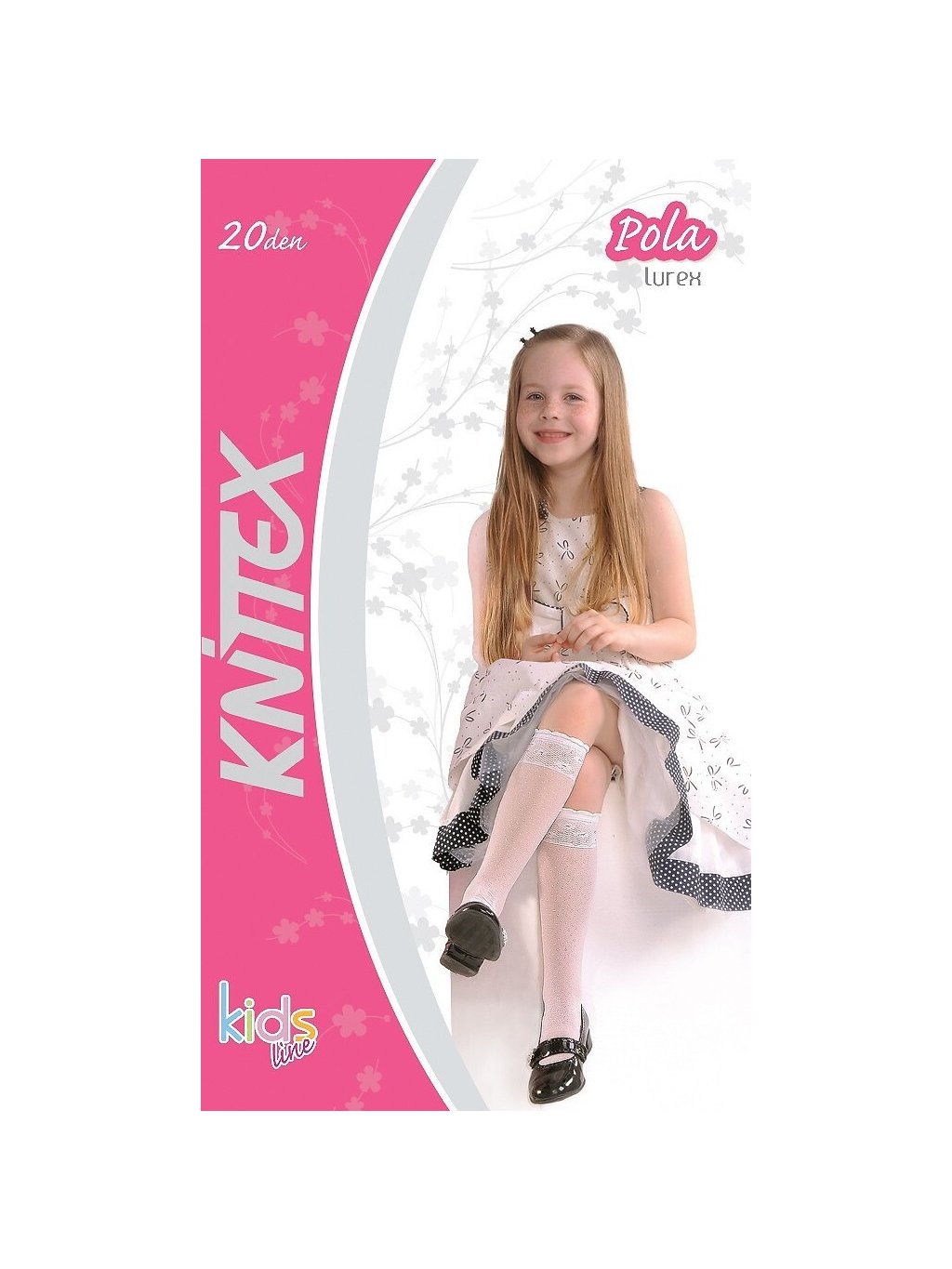 Knittex Dívčí bílé podkolenky Pola Lurex 20 den
