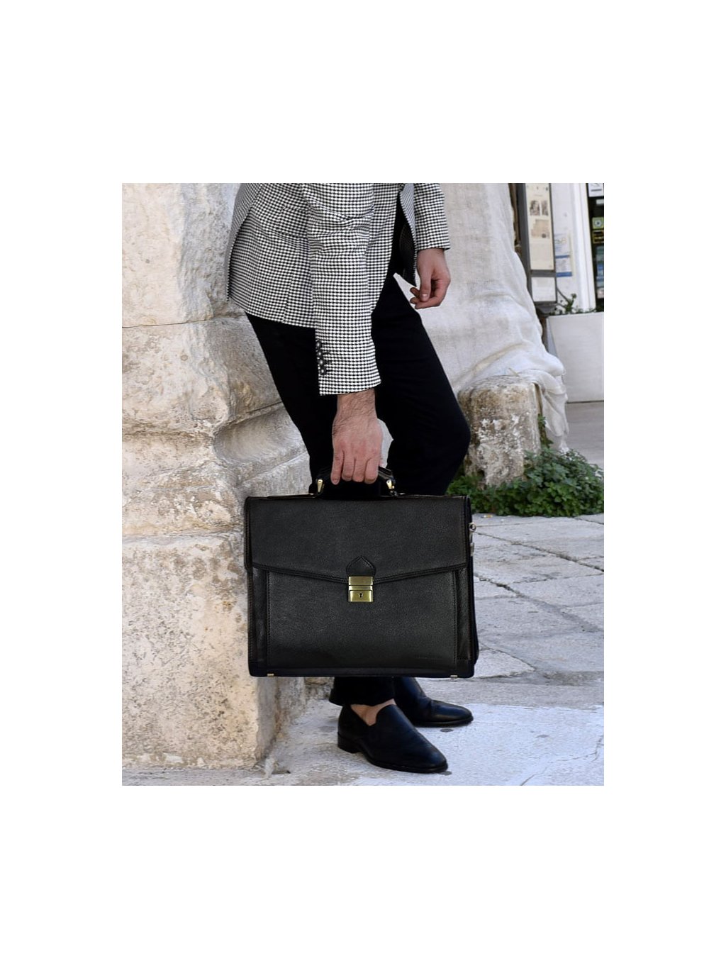Kožená černá aktovka clasic LORIS