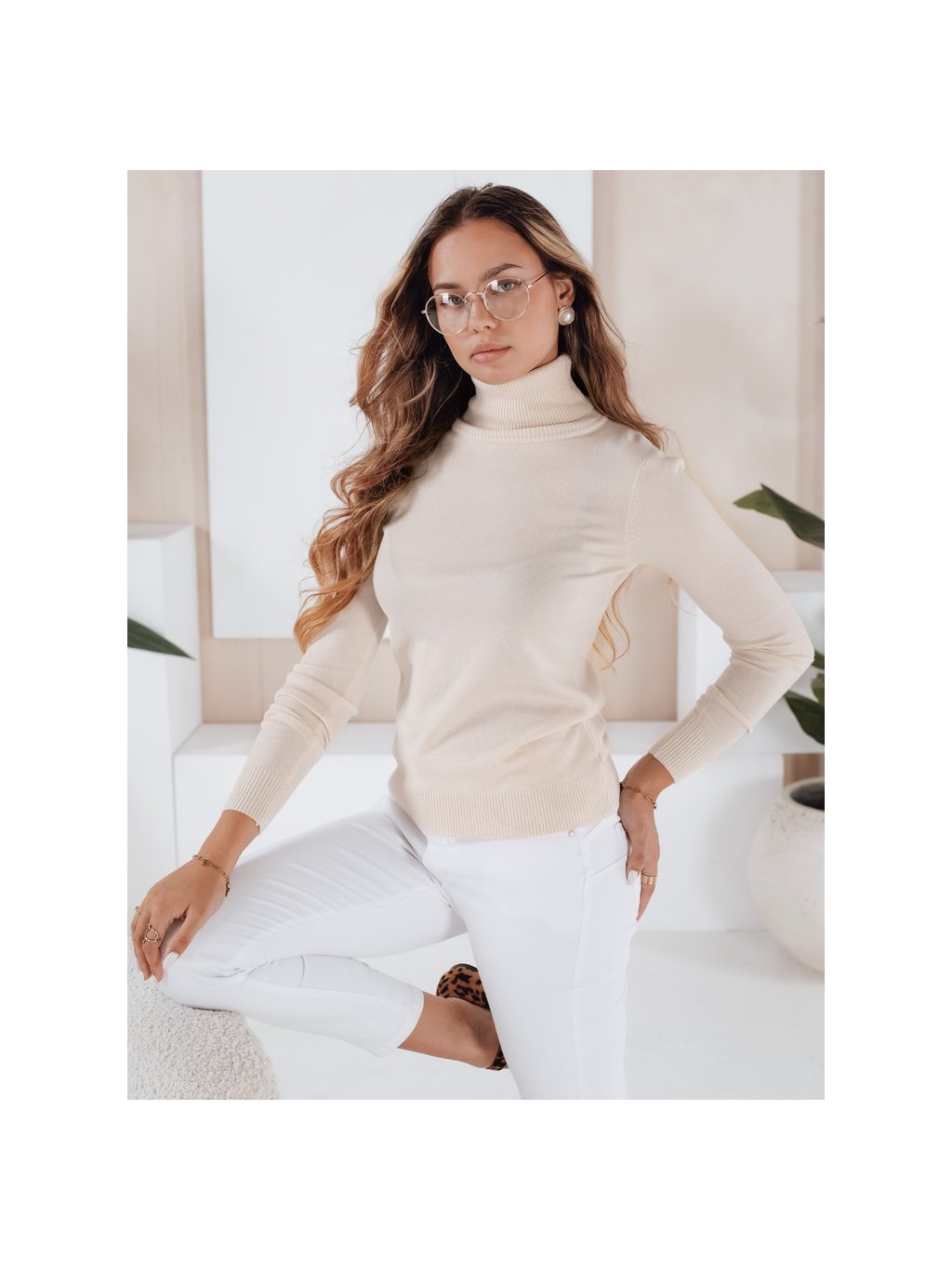 Krémový dámský rolák VANORIA z viskózy