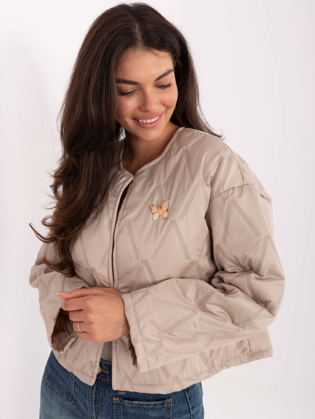 Lehká béžová dámská přechodová bunda bez kapuce