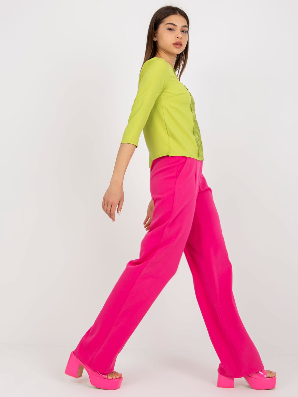 Limetková halenka s krajkovou aplikací a 3/4 rukávem