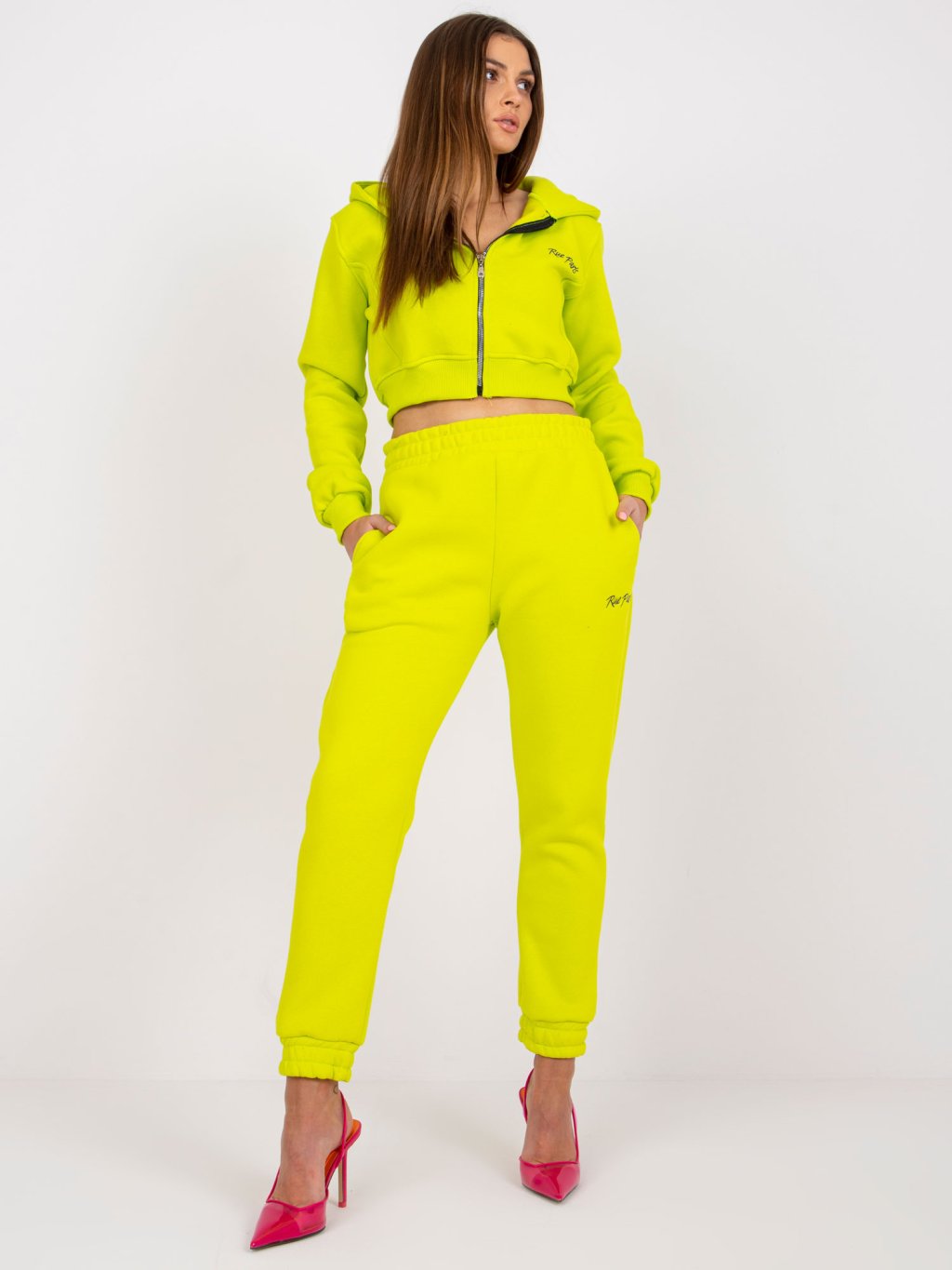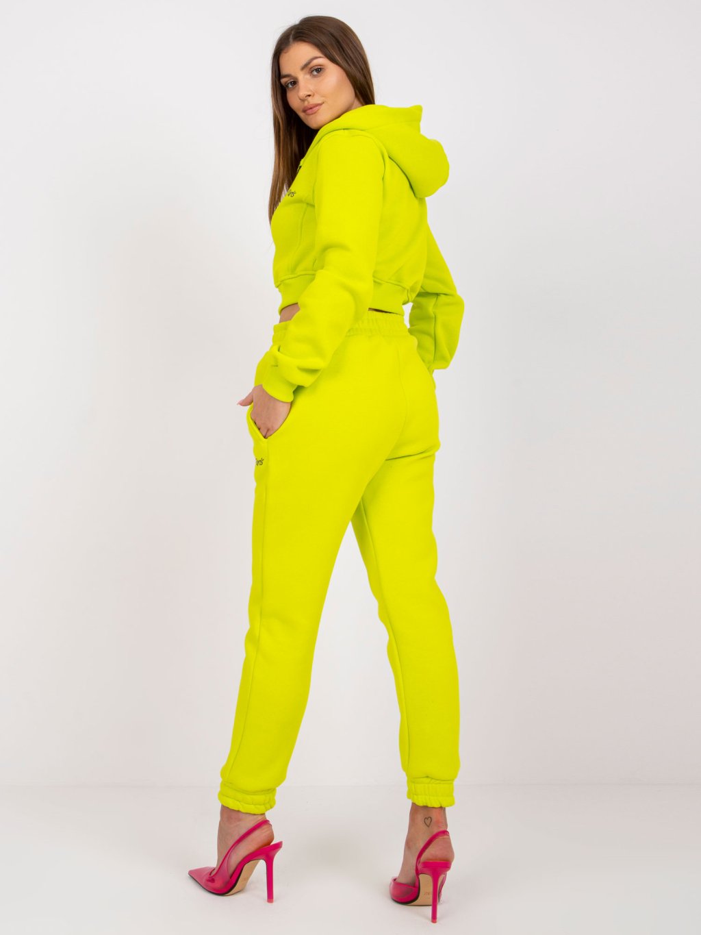 Limetkový set tepláků a "crop" mikiny California
