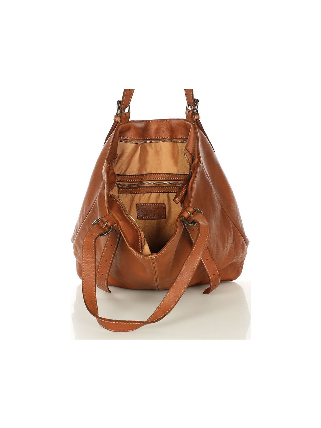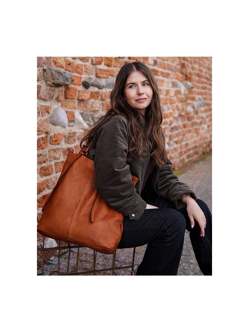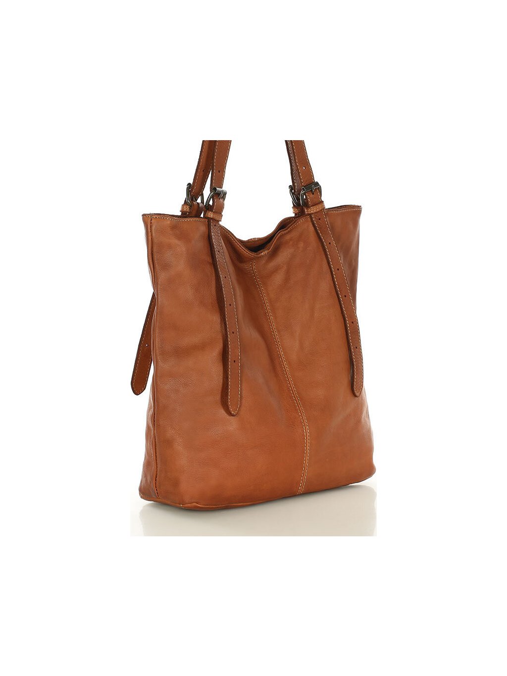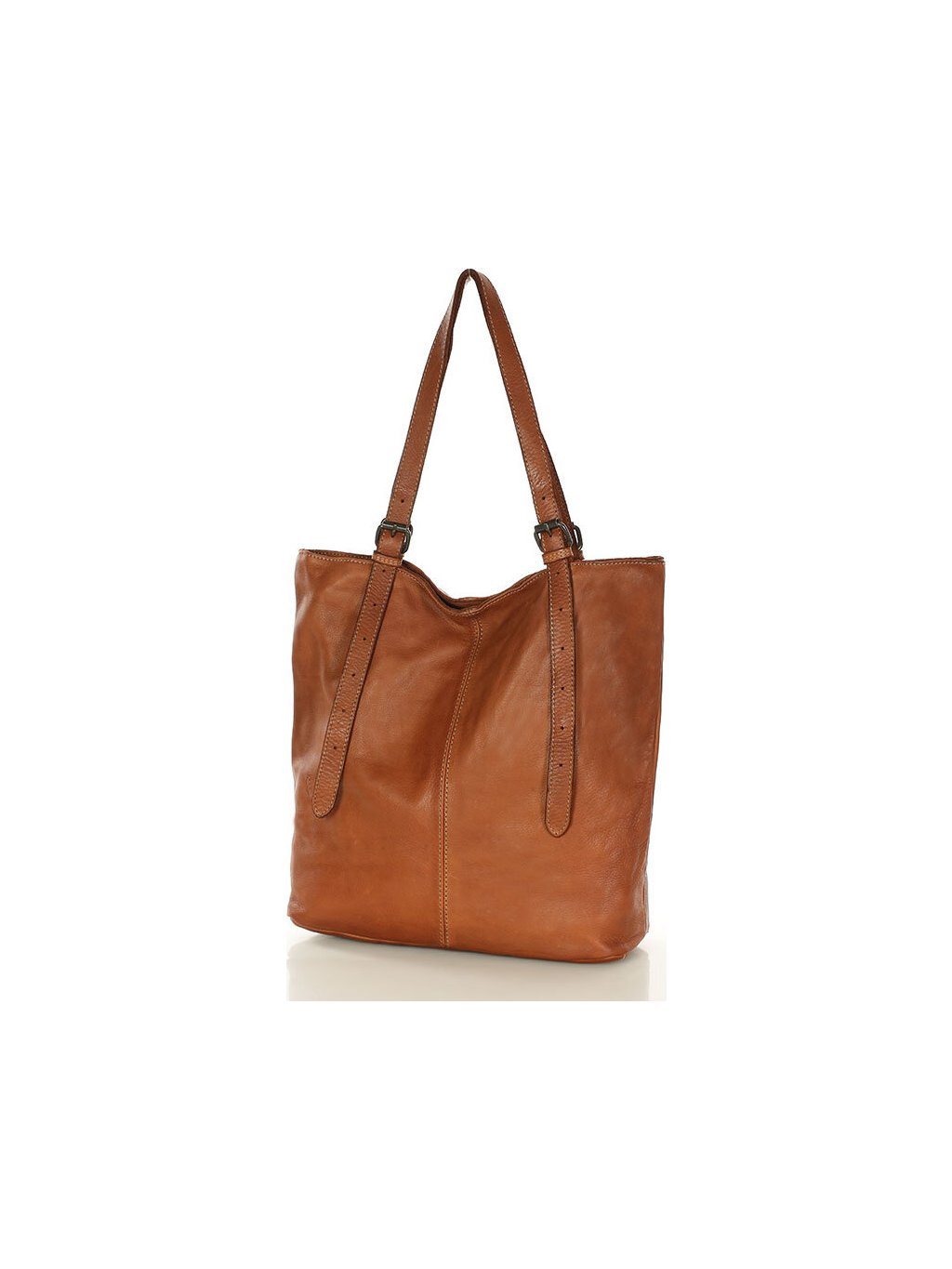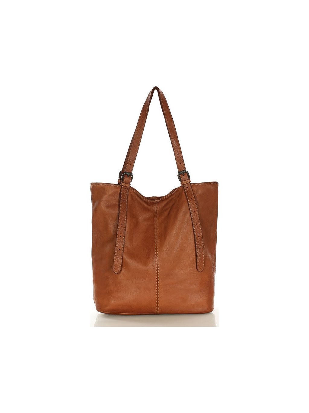 MARCO MAZZINI Hnědá kožená prostorná shopper kabelka