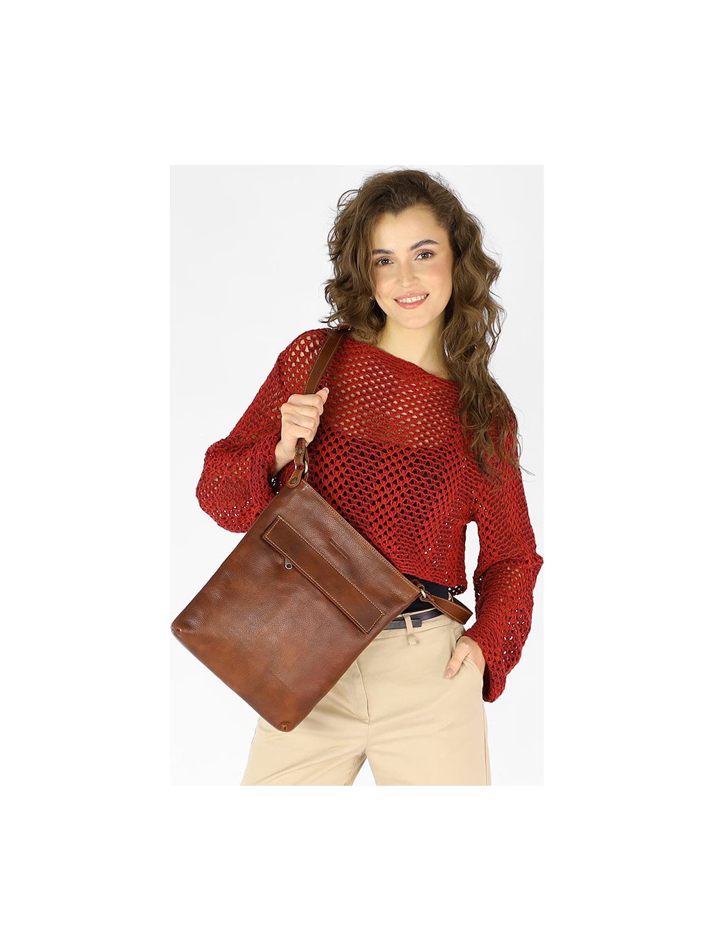 MARCO MAZZINI hnědá obdelníková kožená messenger taška