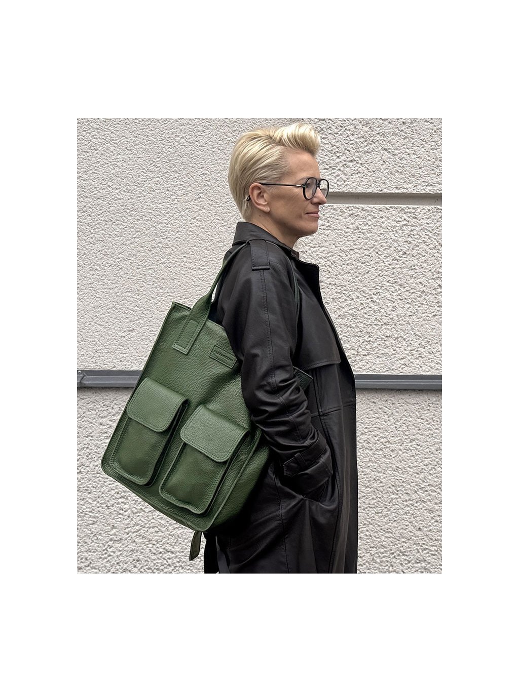 MARCO MAZZINI Tmavě khaki shopper bag s kapsami