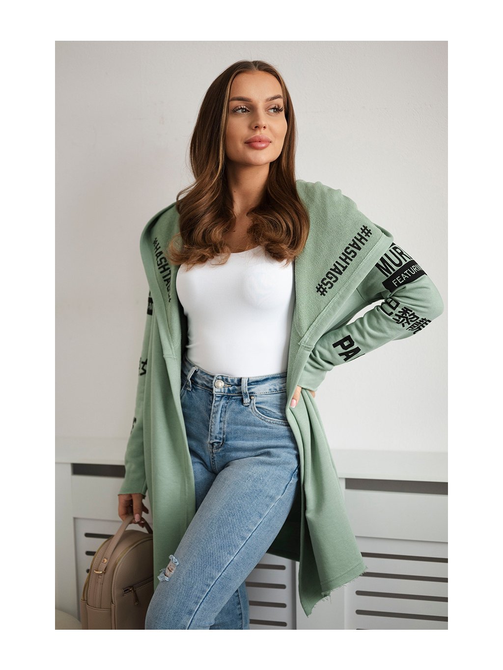 Šedý dámský maskáčový kardigan s nápisy a kapucí