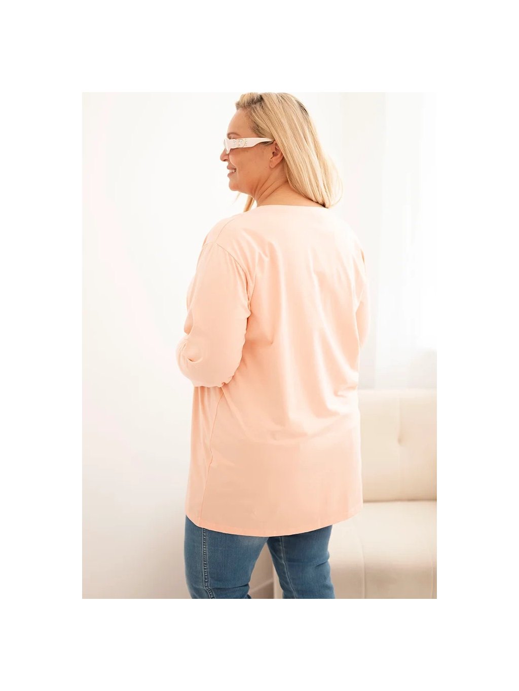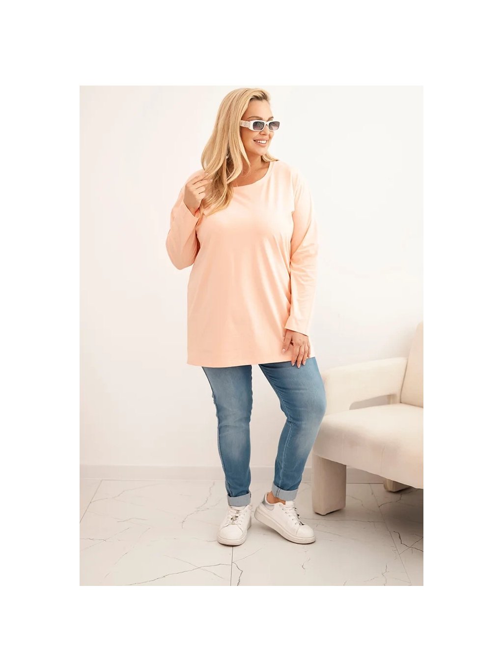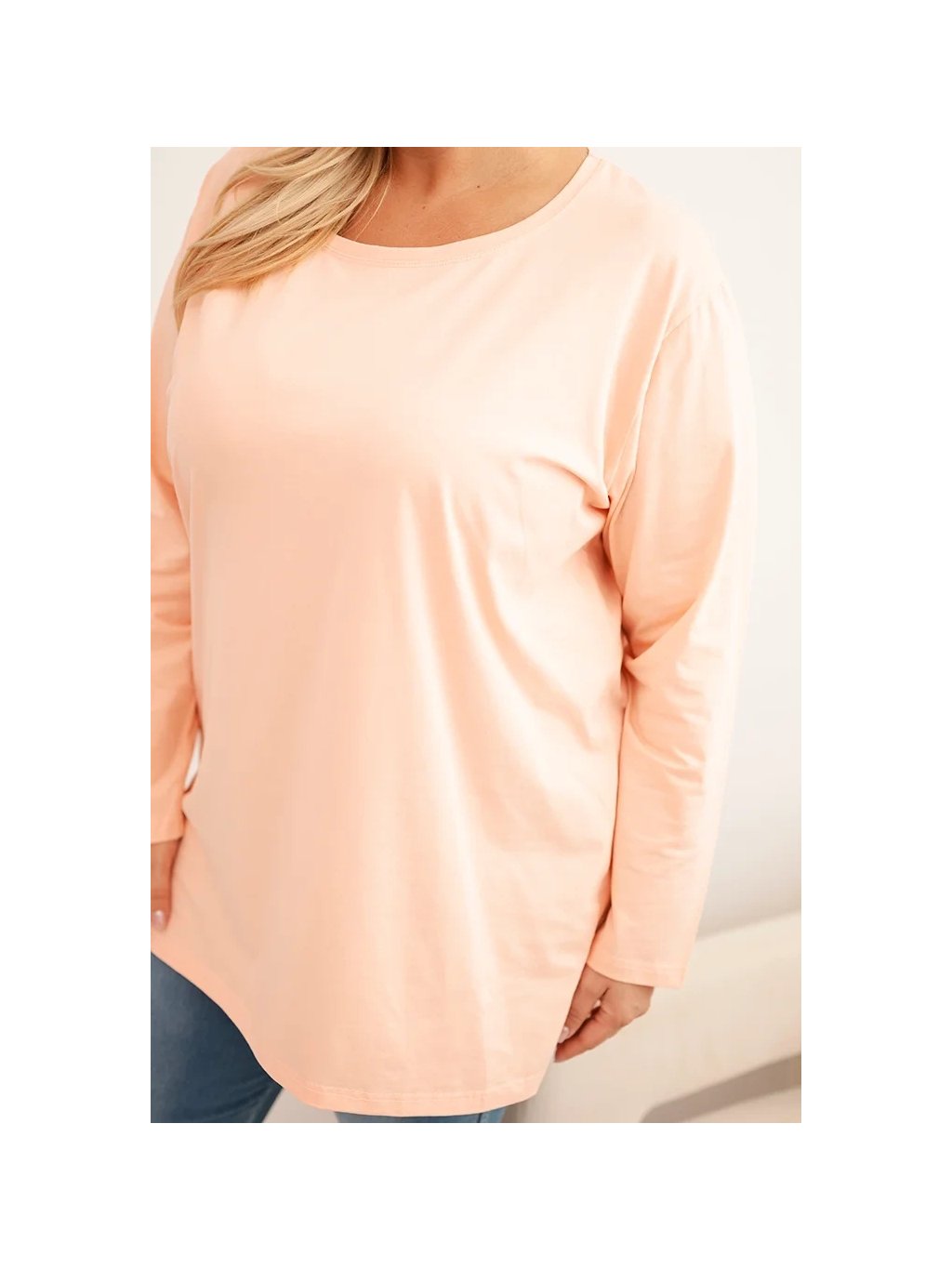 Meruňková plus size halenka s kulatým výstřihem