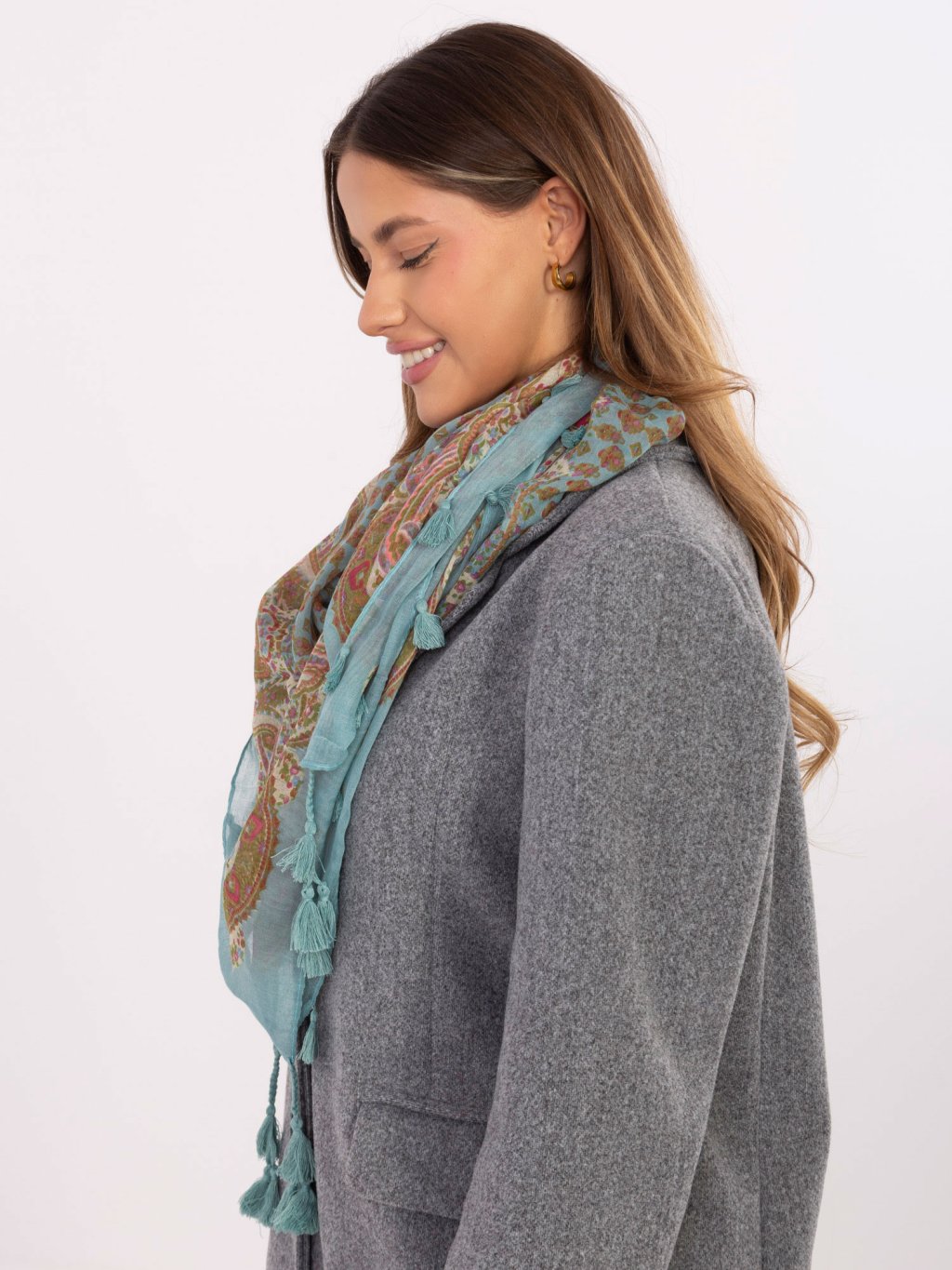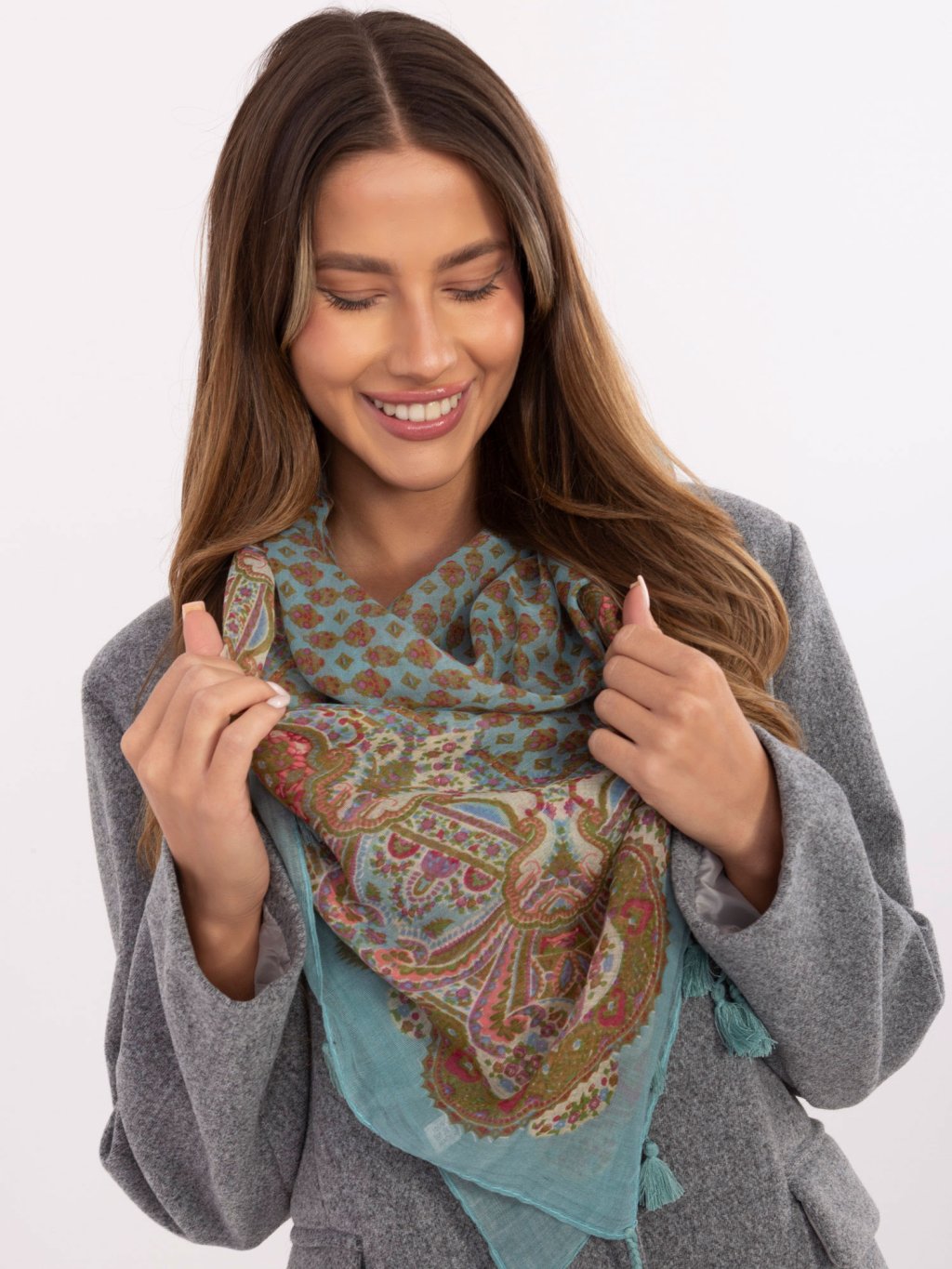 Dámský šátek s bohatými vzory a třásněmi