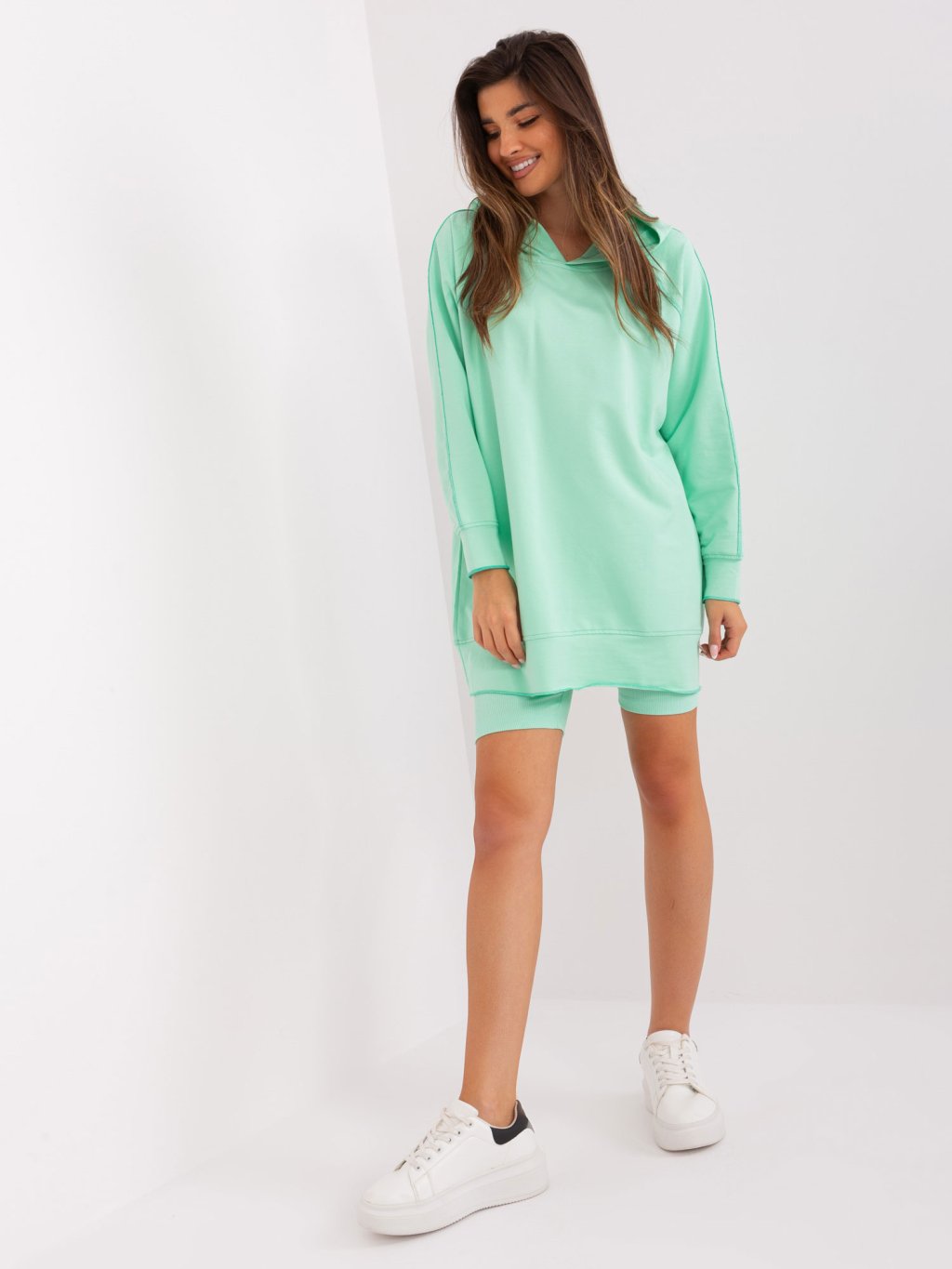 Mintový komplet cyklistických šortek a mikiny