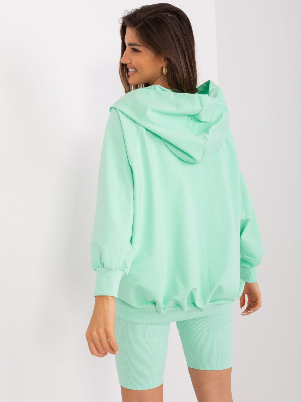 Mintový třídílný komplet šortek, crop topu a mikiny