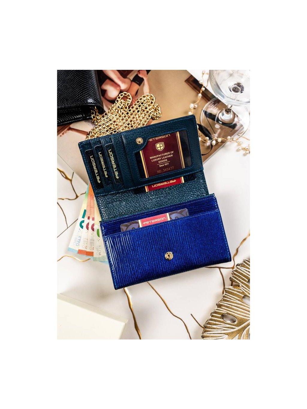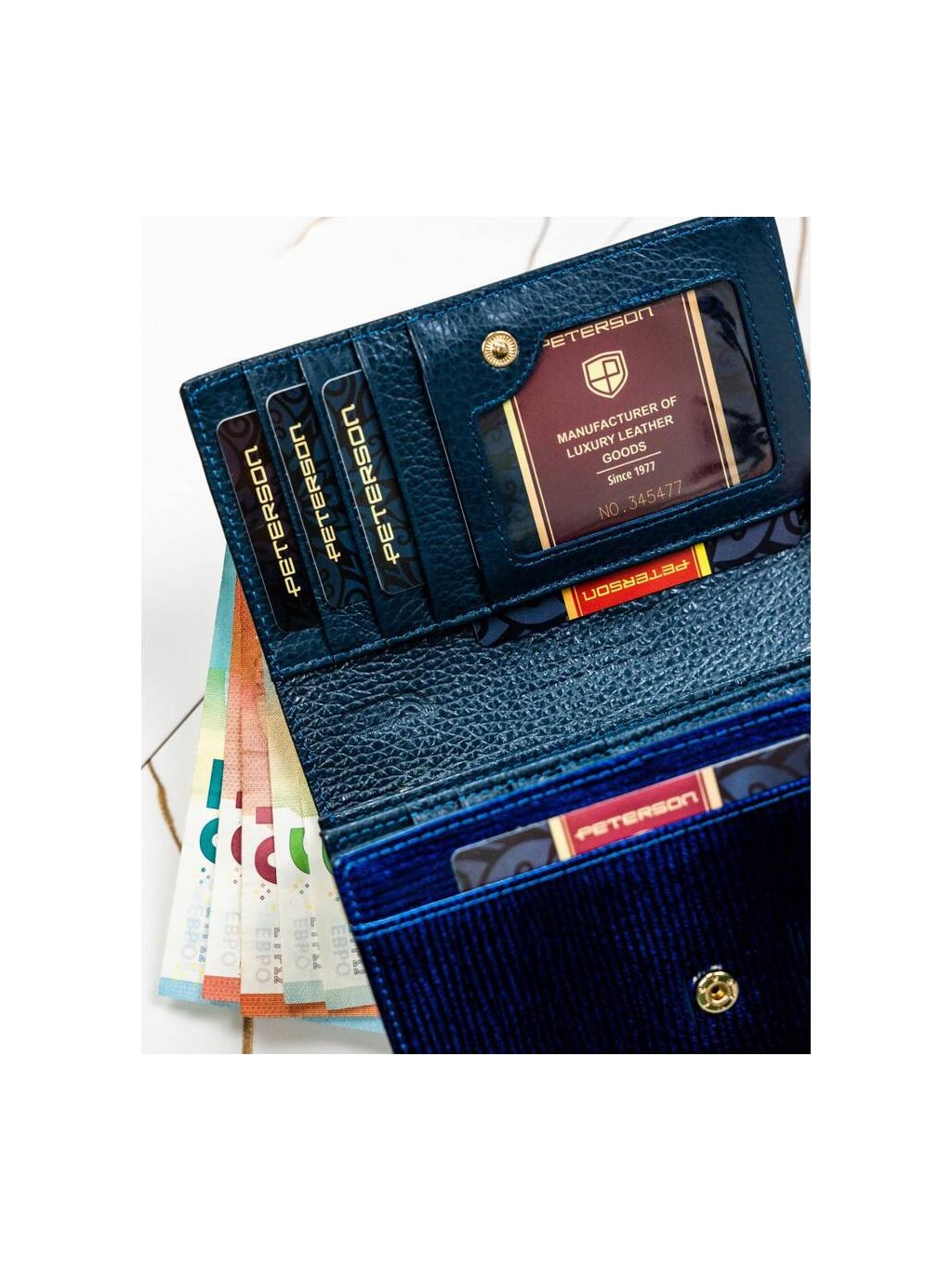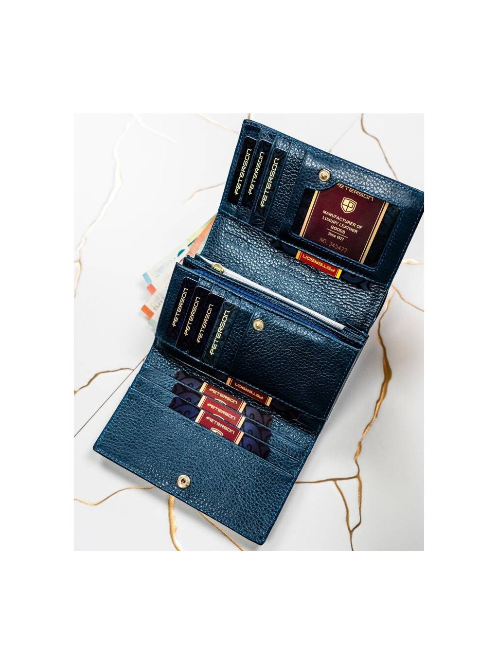 Módní tmavě modrá dámská peněženka z pruhovaným vzorem Peterson Y725