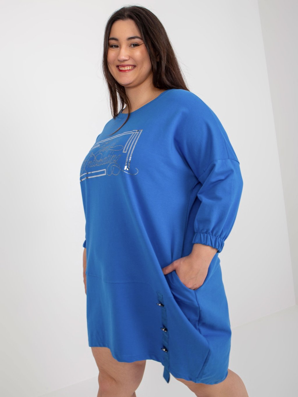 Modelka na obrázcích je vysoká 167 cm, obvod přes prsa 102 cm, obvod pasu 81 cm a boky 113 cm.