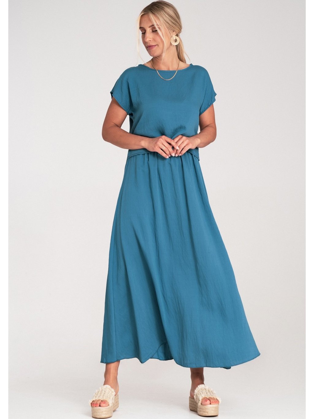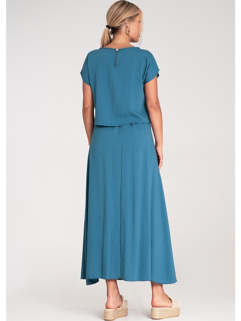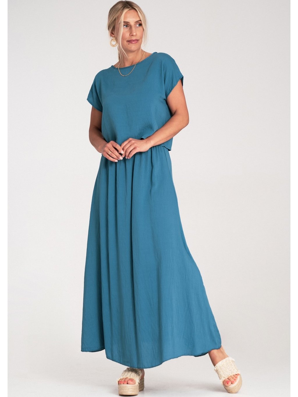 Modrá dámská viskózová souprava volné halenky a sukně s elastickým pasem