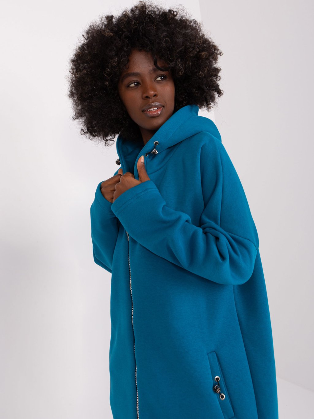 Modrá dlouhá asymetrická mikina