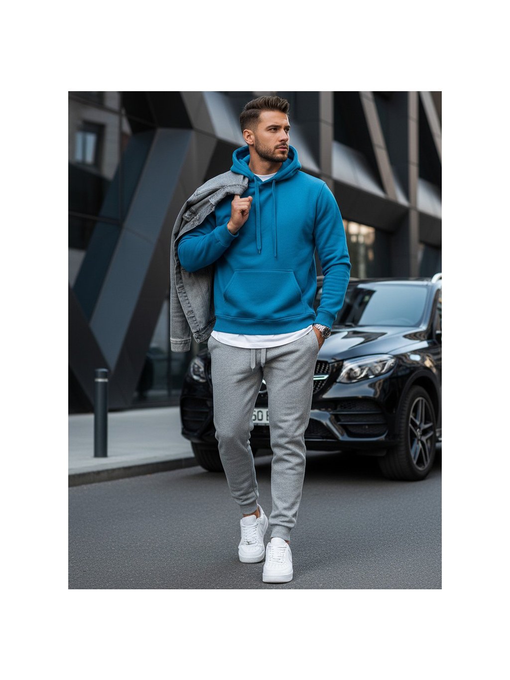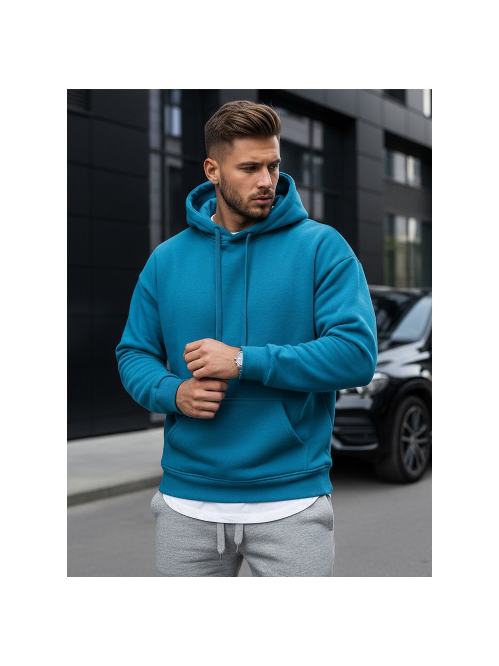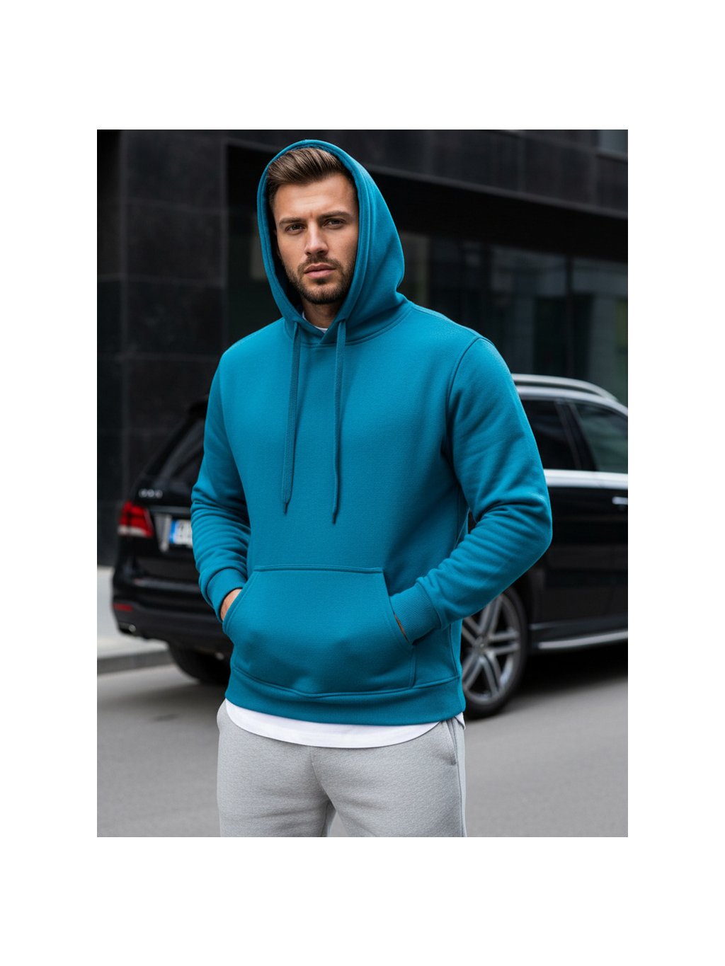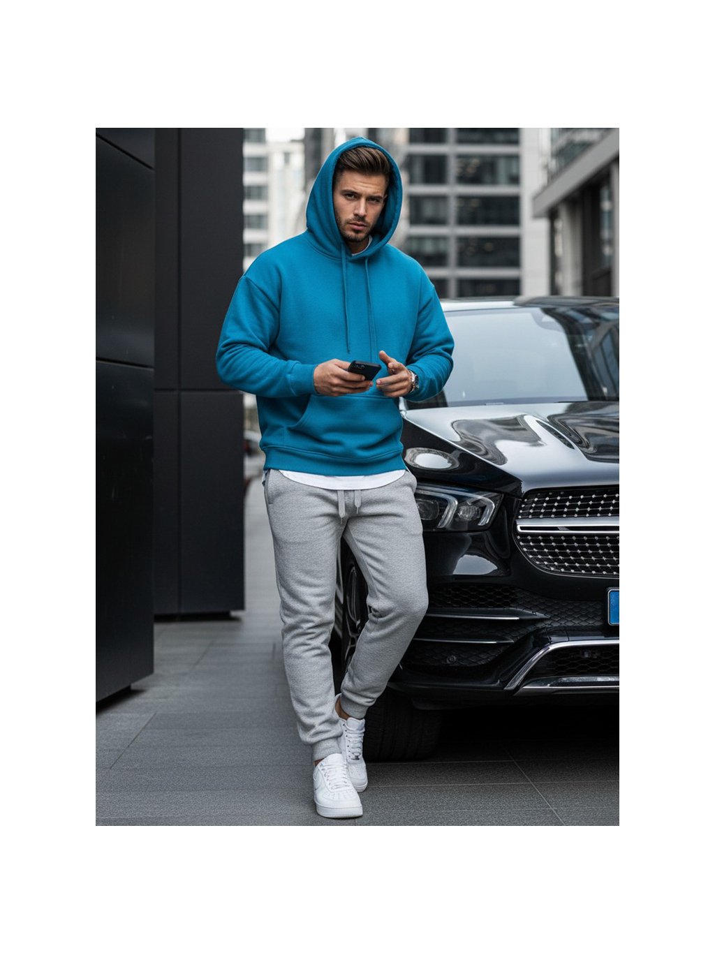 Modrá pánská mikina s kapucí