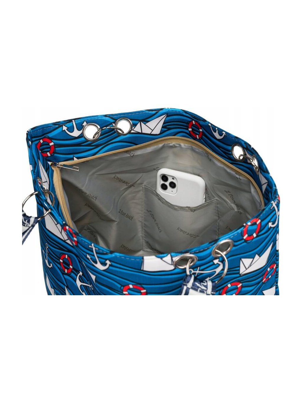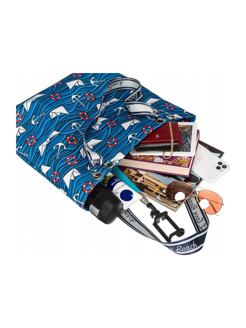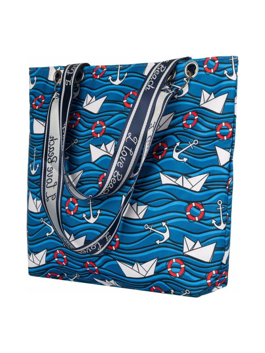 Modrá plážová taška s potiskem