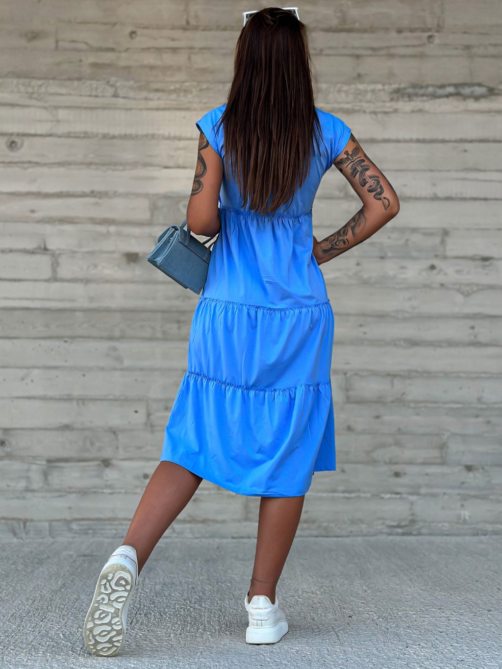 Modelka na obrázcích je vysoká 179 cm, obvod přes prsa 93 cm, obvod pasu 67 cm a boky 93 cm.